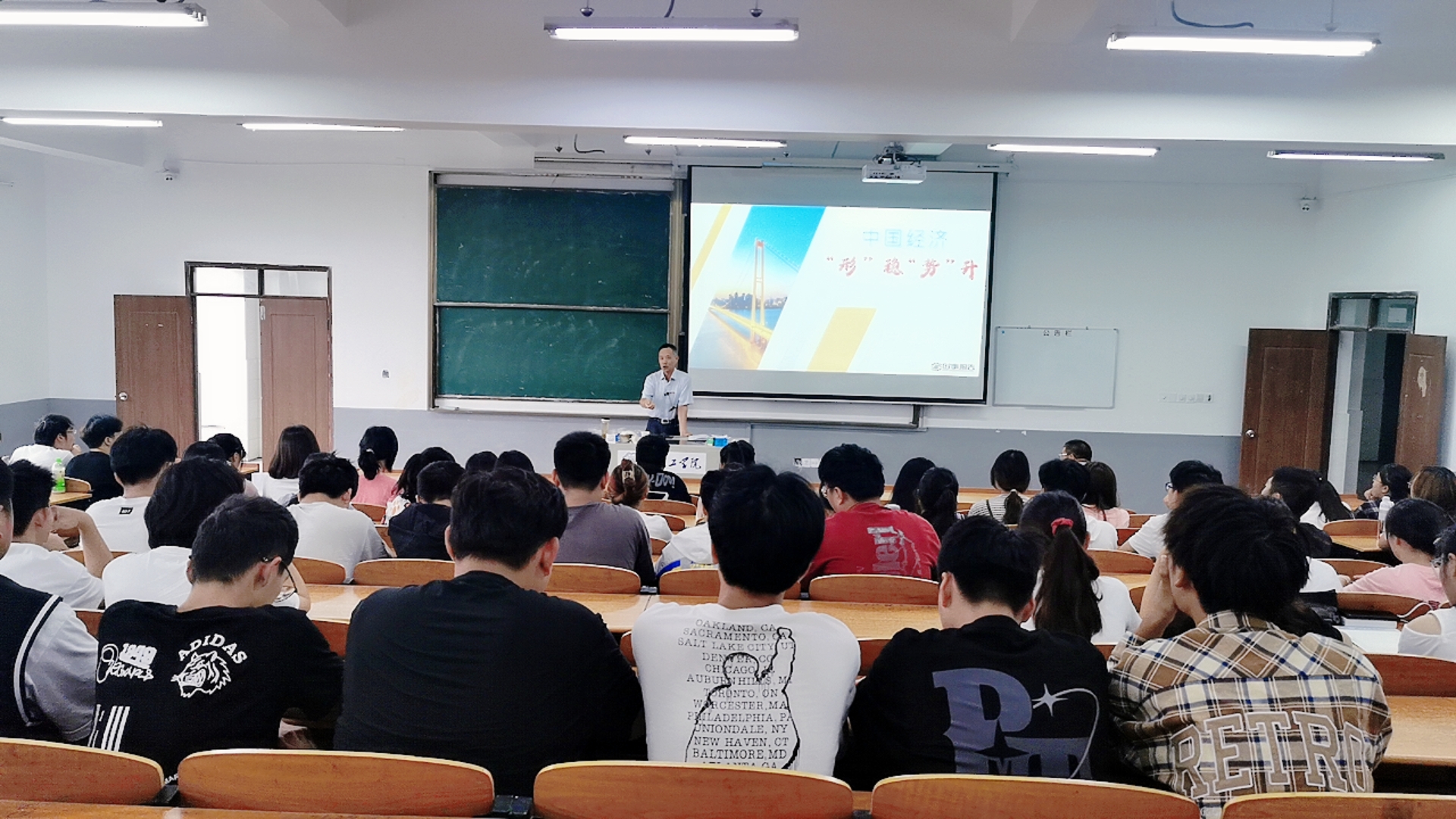 校党委书记丁家云以“中国经济‘形’稳‘势’升”为主题,为22农资环的学生讲授精彩的“形势与政策”课。丁书记分别从经济回升向好态势、风险挑战及中国未来经济底气三个方面讲授,在课程中选择了贴近学生生活实际的案例,并结合最新的时政热点解读当前经济发展态势,逐步完成情感态度价值观内化于心、外化于行的精神引领。