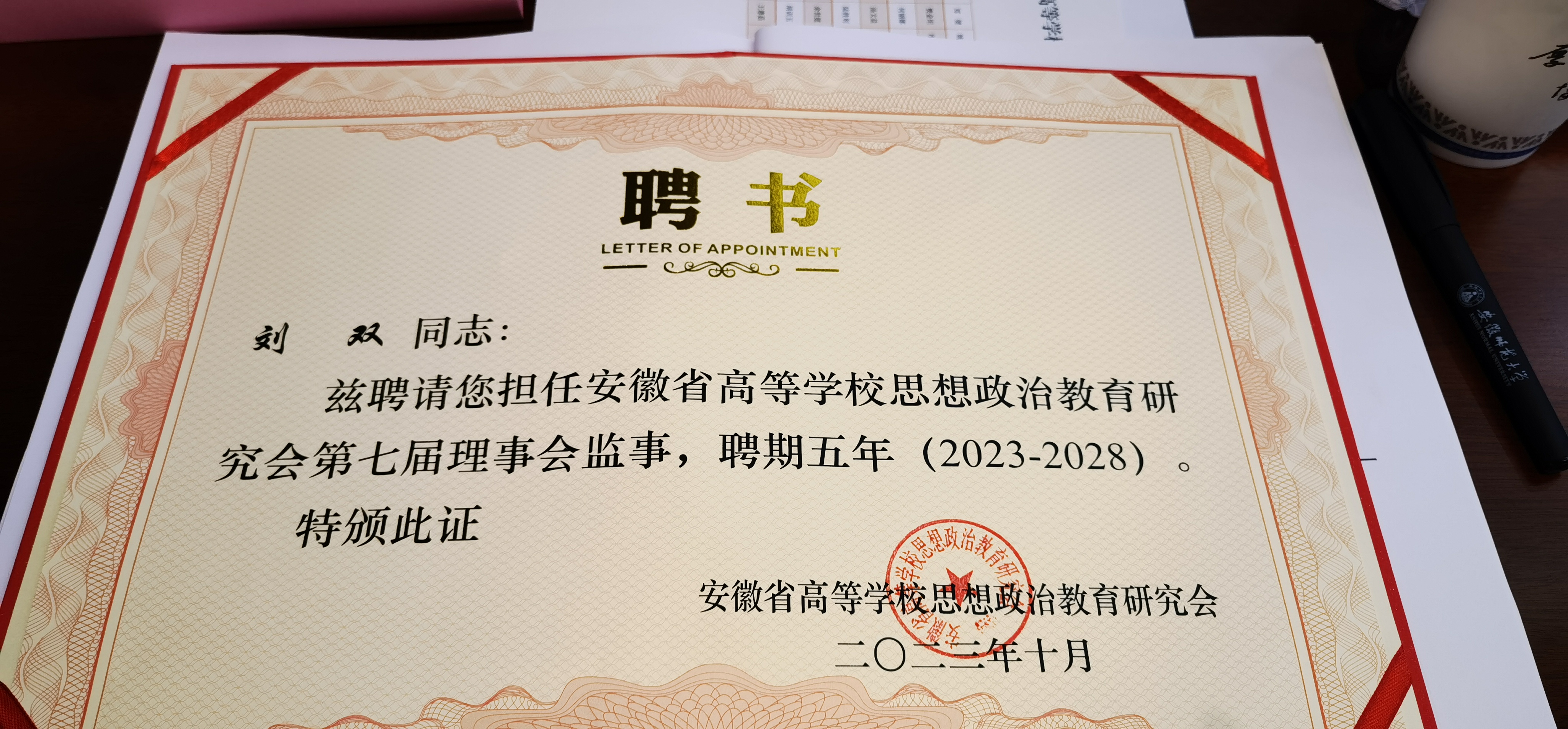 10月27日,安徽省高等学校思想政治教育研究会第七届代表大会在安徽师范大学胜利召开,经过选举,我院总支书记、常务副院长刘双被选为第七届安徽省思政研究会监事,beat365官网也当选为监事单位,任期5年。