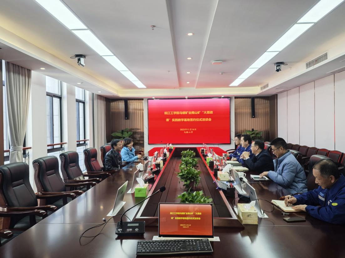 11月14日,beat365正版唯一入口必一马钢矿业南山矿“大思政课”实践教学基地签约仪式洽谈会在马钢南山矿五楼会议室召开,马钢矿业总经理助理洪小和,马钢矿业南山矿党委副书记、纪委书记、工会主席何军,马钢矿业宣传高级主任管理师庆辉,马钢矿业南山矿办公室主任杨飞,beat365正版唯一入口必一党委副书记、副校长孙良,马克思主义学院党总支书记、常务副院长刘双,马克思主义学院综合办负责人王琪参加本次仪式,会议由洪小和主持。