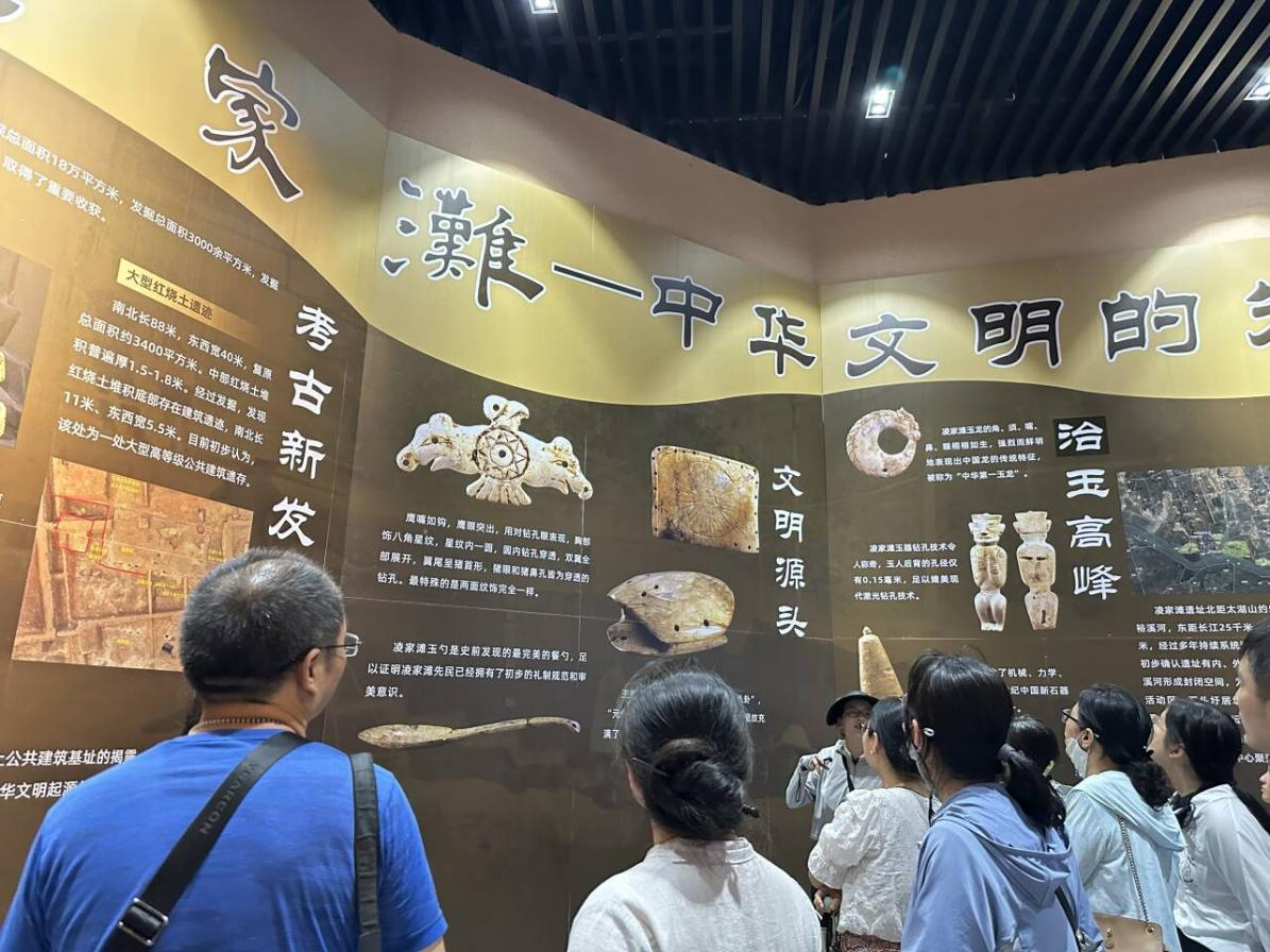 来到马鞍山市博物馆,聆听了讲解员对马鞍山从古至今的历史文化发展,依次参观了“文明曙光”,“六朝京畿”,“人杰地灵”,“山水诗城”,“现代文明”五个展馆,博物馆充分展示了马鞍山市深厚的历史文化底蕴。随后,来到凌家滩,观看了凌家滩遗址专题纪录片,参观了墓葬祭祀区发掘现场及展示厅,了解玉器制作工艺、历史脉络和中华文化。凌家滩古文明遗址彰显了这片土地五千多年前的文明优势。