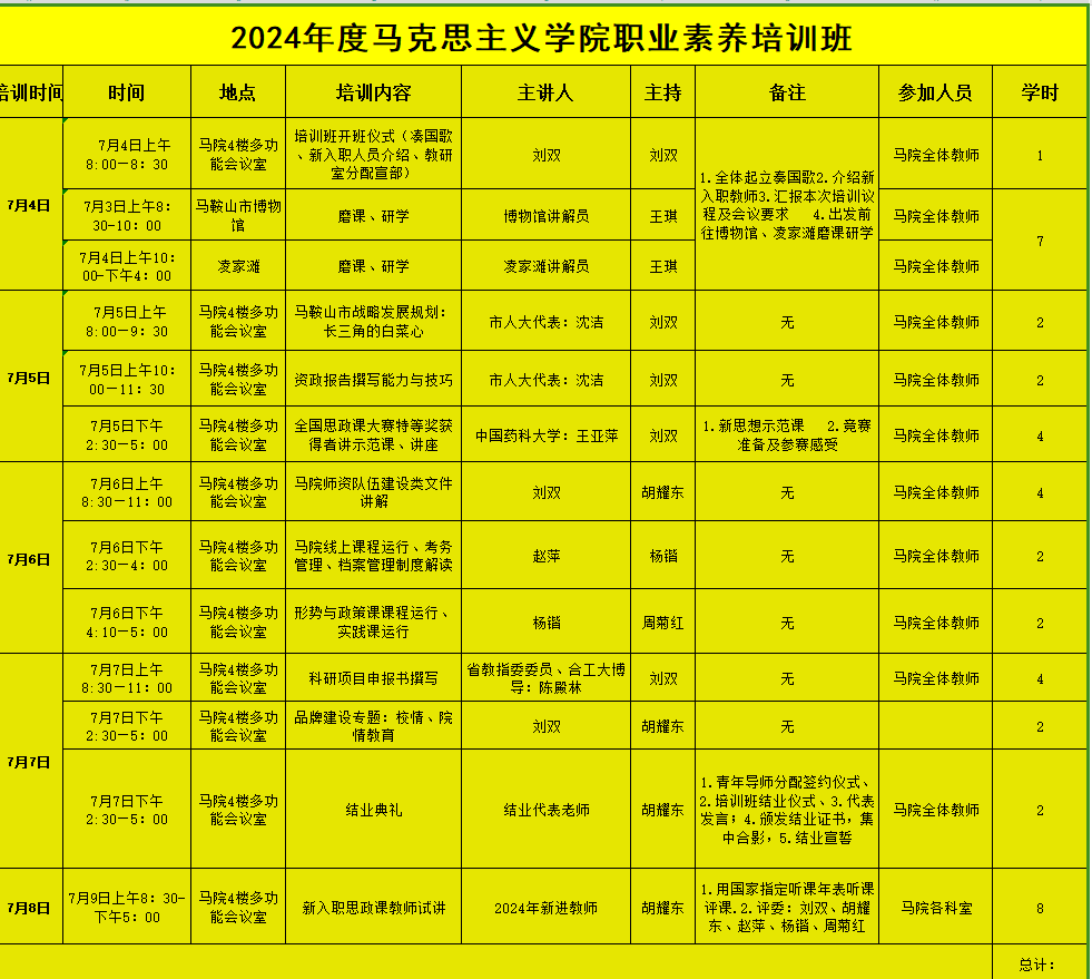 7月7日下午,马克思主义学院举行了2024年暑期教师培训班结业仪式。马克思主义学院总支书记、常务副院长刘双,副院长胡耀东,各教研室主任及全体思政课教师参加。会议由胡耀东主持。