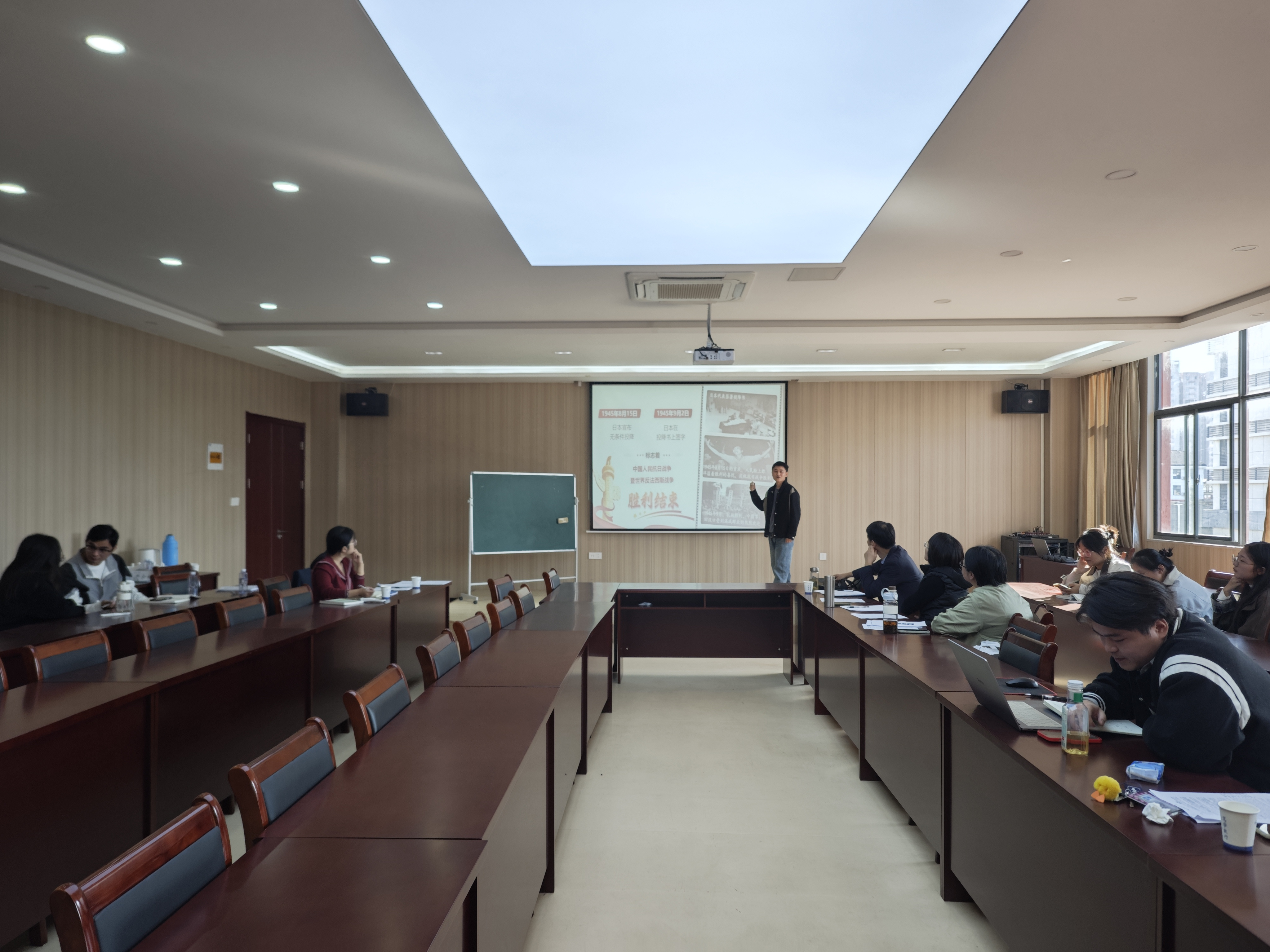 依据皖工党发〔2025〕74号关于开展“纪念中国人民抗日战争暨世界反法西斯战争胜利八十周年”主题讲课比赛活动的文件通知,为弘扬伟大抗战精神,提升思政课教学质量,10月22日,马克思主义学院在多功能会议室举行“纪念中国人民抗日战争暨世界反法西斯战争胜利八十周年”主题讲课比赛。