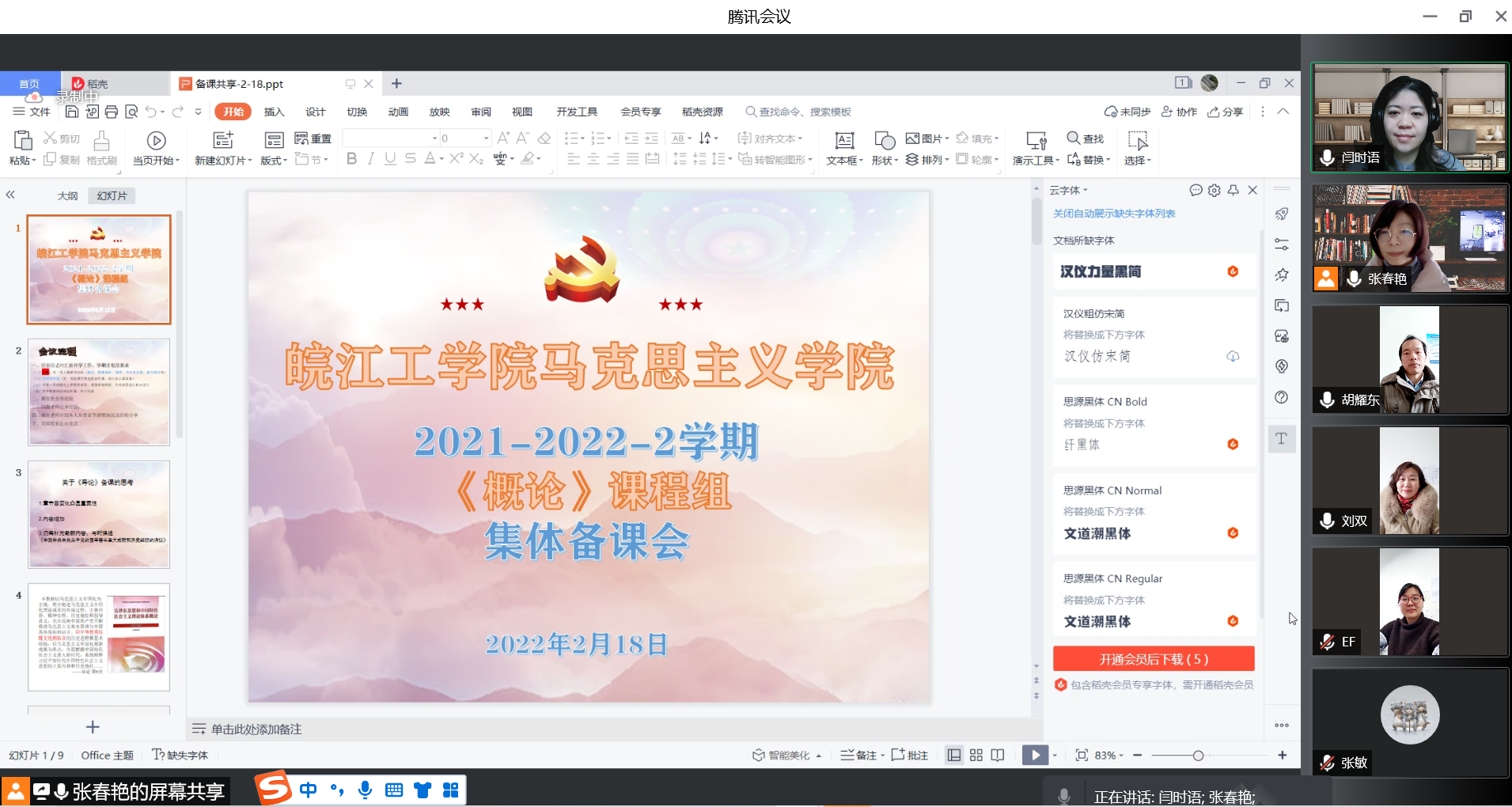 2月18日,马克思主义学院概论、纲要教研室召开《毛泽东思想和中国特色社会主义理论体系概论》集体备课会,课程组全体教师参加了会议。会议由张春艳老师主持。