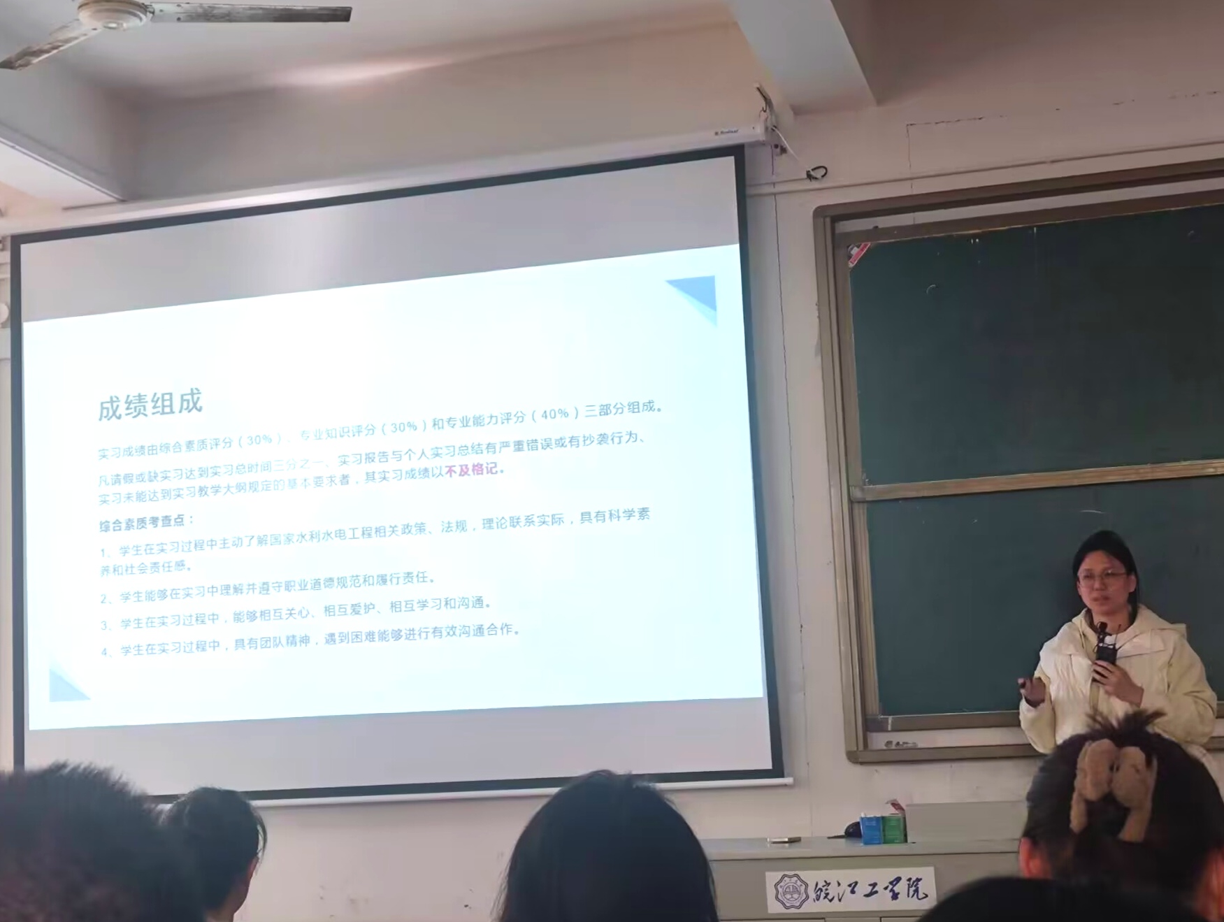 4月10日,所有带队老师和同学参加了实习动员大会,田晓丹老师出席会议并作了实习动员讲话,她鼓励同学们通过此次实习深入了解我国水利工程建设和水资源综合利用的方针政策及其发展趋势,期望同学们能够通过现场参观,对水利枢纽的规划、设计、施工等流程有更为直观的认识。唐雨卉老师着重强调了实习期间及进入现场时的纪律及注意事项,提醒同学们注重安全,发扬团结互助的精神,保持文明礼貌,听从安排,以展现学校的良好形象。她还详细介绍了实习的具体安排和要求,鼓励同学们利用课余时间复习已学知识,并搜集整理相关工程资料,为实习做好充分准备。