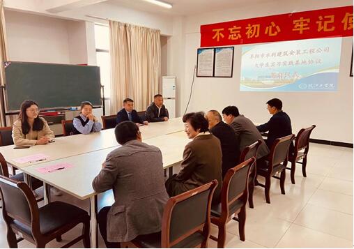 为提高人才培养质量,更新建设水利水电工程专业实习实践教学基地,4月9日上午,beat365正版唯一入口必一与阜阳市水利建筑安装工程公司共建实习实践教学基地签约仪式在水利楼311会议室举行。校党委副书记张勤、学工部副部长江春明、水利工程学院党总支书记张亚梅、副书记汪朱华、院长助理葛文生出席了会议。