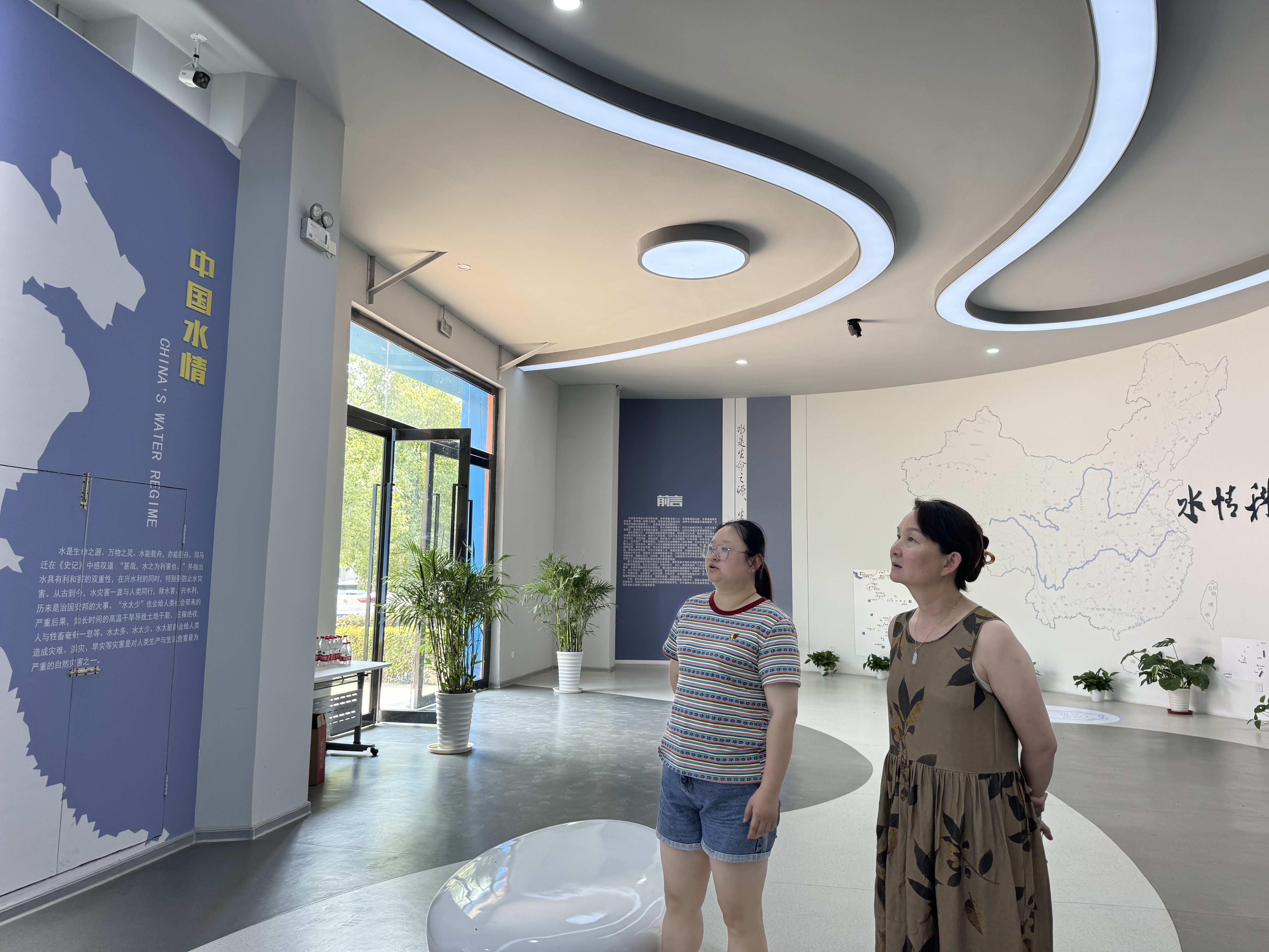 6月12日上午,田晓丹、唐雨卉陪同王琳高工参观了beat365官网郑蒲港校区的水情科普教育基地,并介绍了水情科普教育基地建设的基本情况,参观了长江、黄河、淮河这三大流域的模型沙盘。王琳高工对此表示了极高的赞誉,并提出了很好的建议,她建议在模型沙盘中增添南水北调工程模型,以便更全面地展示我国水资源调配的伟大实践,通过演示中、东、西三线的补水过程,进一步增强公众对水情科普的认识。