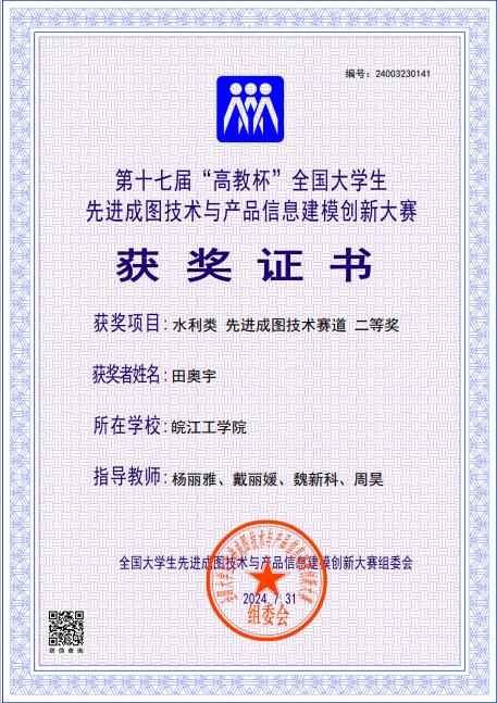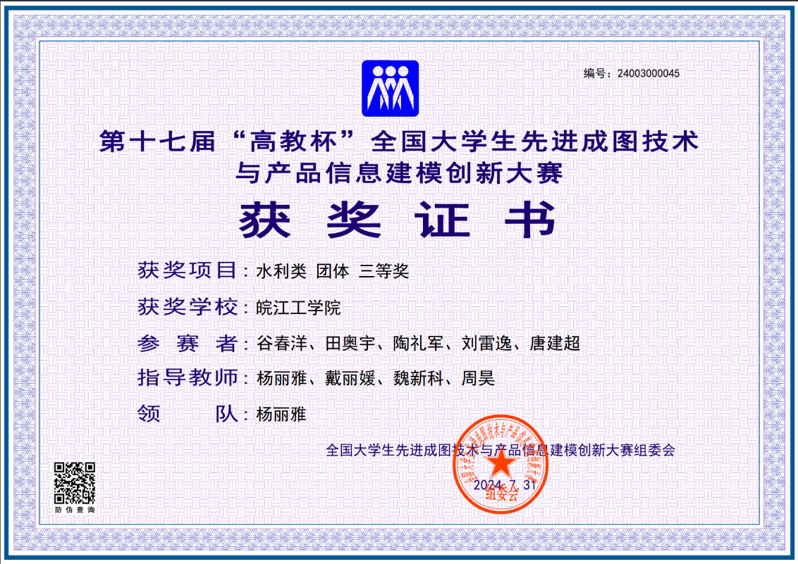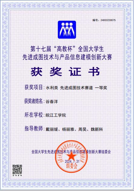 赛前,杨丽雅、戴丽媛、魏新科和周昊等几位指导教师积极组织学生开展了赛事集训,加强相应技术技能培训,最终经过层层选拔,选出十人代表学校参加比赛。最终共5名同学凭借扎实的专业技能和良好的实践能力,在比赛中喜获佳绩,其中谷春洋荣获一等奖,田奥宇荣获二等奖,刘雷逸、陶礼军、唐建超获得三等奖,并荣获水利类团体三等奖,为学校赢得了荣誉。