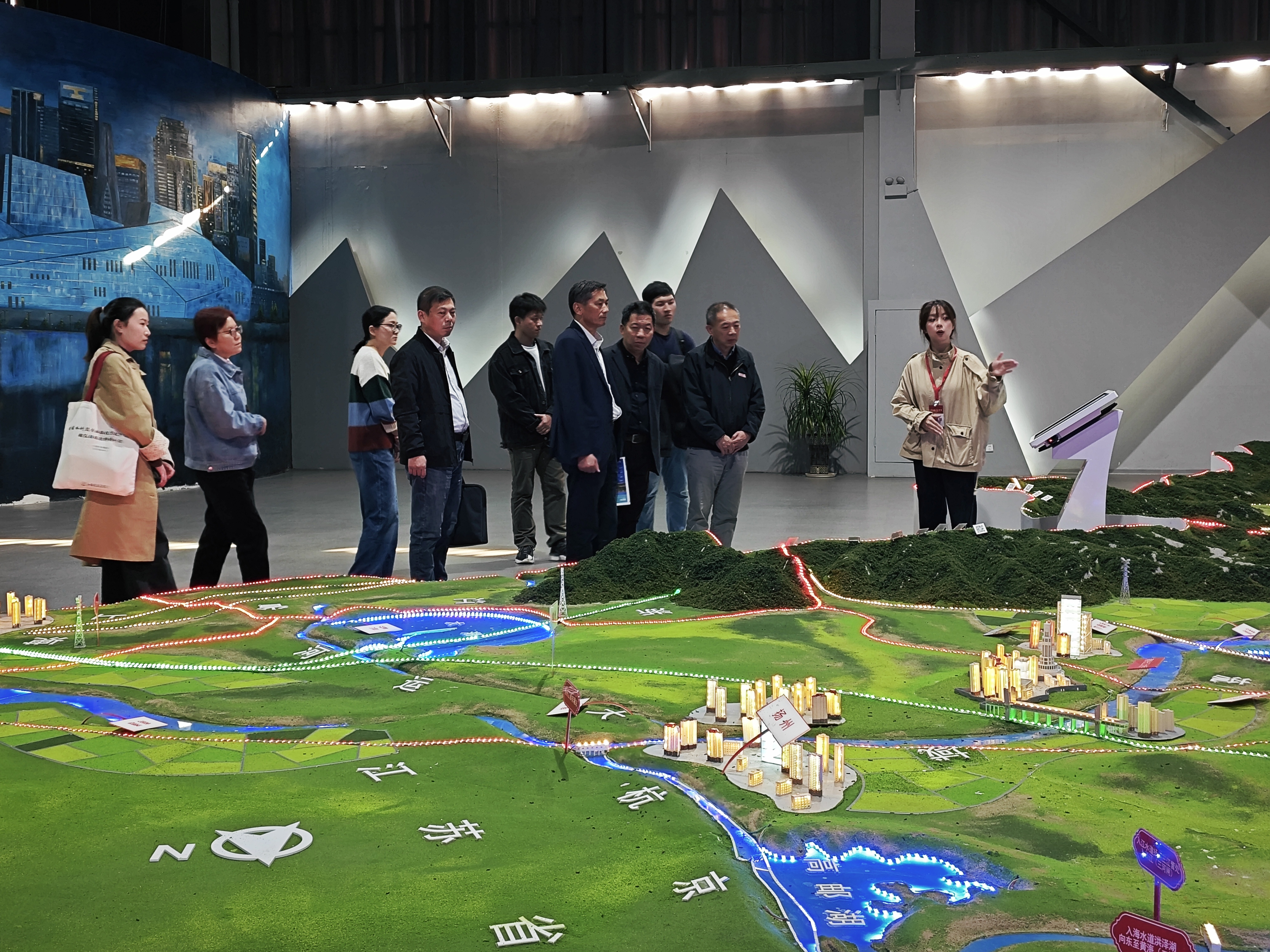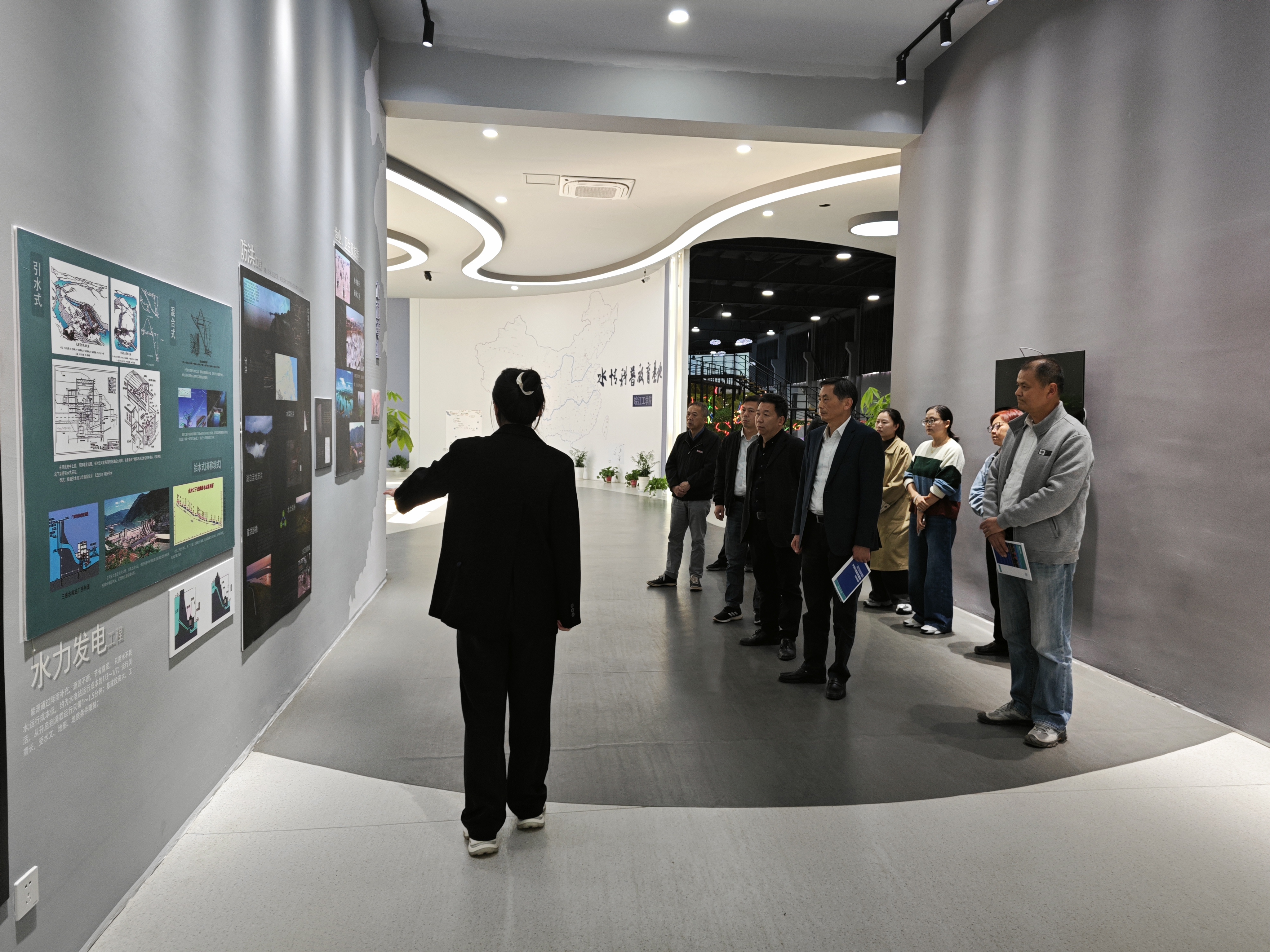 马鞍山港口集团叶守旻一行在胡明的陪同下参观了郑蒲港水情教育科普基地以及港航综合实验室。