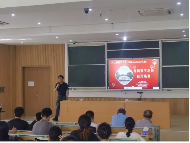 娄保东教授为河海大学国家工程中心数字孪生所所长、河海大学智能感知技术创新研究院DeepSeek行业应用中心主任,引出此次讲座主题“人工智能正大步走向数字水利应用场景”。在当今数字化时代背景下,人工智能技术为传统水利行业转型升级带来新契机,对解决复杂水资源问题、提升水利工程管理效率意义重大。娄教授围绕主题,结合国内外前沿研究成果与实际案例,对其未来技术突破方向与产业化发展路径进行了前瞻性探讨。