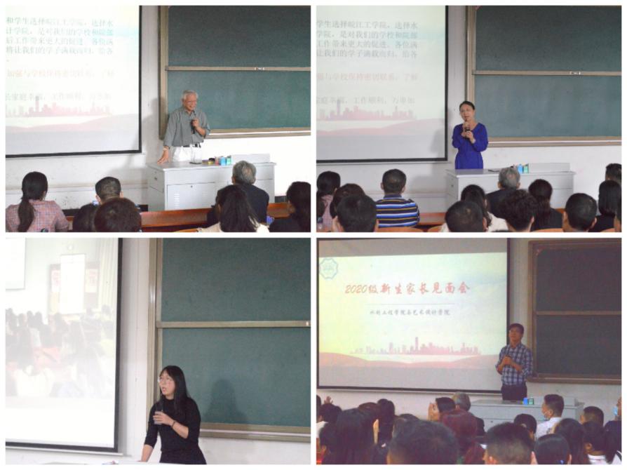 下午13:30在S207召开了水利工程学院、艺术设计学院新生家长见面会。水利院院长沈长松、艺设院院长江冰、水利与艺术党总支副书记汪朱华、艺设院副院长刘瑛,水利院院长助理葛文生、张鹏、各专业教研室主任20级新生辅导员以及部分新生家长出席了此次见面会。会议由汪朱华副书记主持,他首先向家长介绍了学校情况、学校学生管理规章制度及院特色团学活动。随后,沈长松院长和江冰院长分别向新生家长介绍水利院和艺设院的概况,并就历届毕业生考研和就业以及学生管理等方面情况与家长们作了交流,并代表学院感谢各位家长将孩子送到皖工来学习,表示将尽心工作,尽职尽责,努力将他们培养成才,不辜负家长对我们的信任。会后,家长就学习和生活等方面关心的问题与他们进行了进一步的沟通与交流。