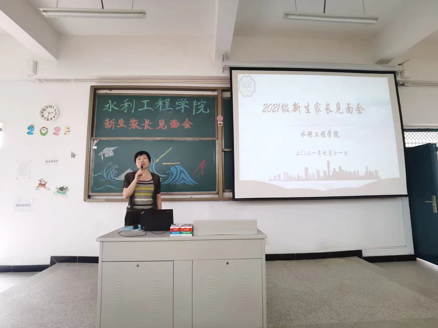 9月11日下午水利工程学院在郑蒲港校区D204教室召开了新生家长见面会。水利与艺术党总支书记张亚梅、副书记汪朱华、水利工程学院院长助理葛文生、张鹏以及各教研室主任、学工办、分团委负责人、新生辅导员等参加了会议。90多名新生与家长参加了见面会。