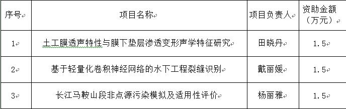 马鞍山市水工程健康诊断与修复技术研究中心 2023年度开放基金项目立项公示