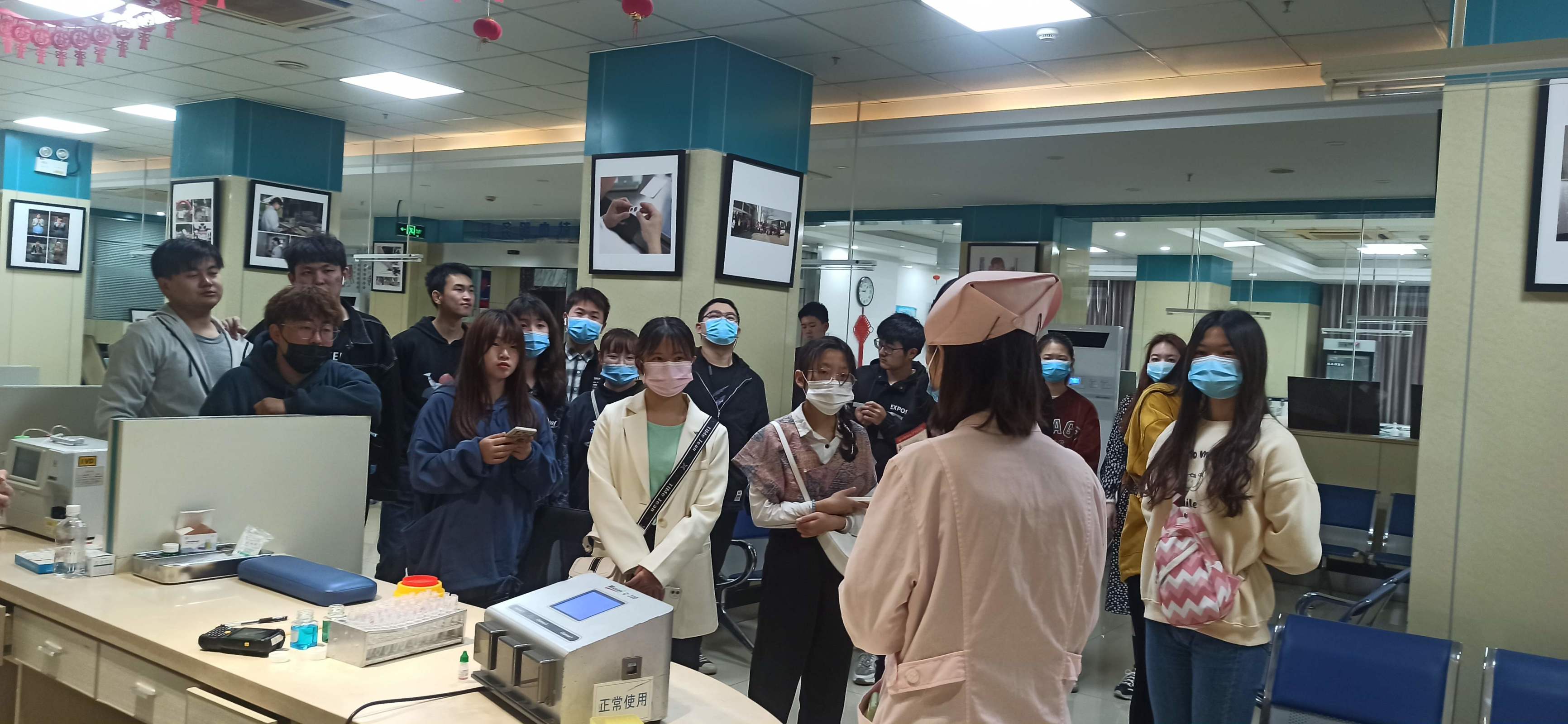 在血站工作人员的引导下,同学们依次参观了献血服务科、成分科和中心血库,血站工作人员向同学们介绍了采供血的各个流程,同学们零距离地观看了从血液的采集、制备、检测、储存再到发出的全过程,让同学们更加深入地了解了血液的成分和临床用血的基本常识。参观活动结束后有7名同学主动参与了爱心献血,累计献血量2100毫升。