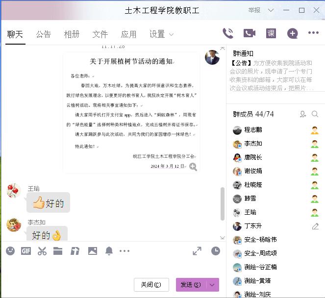 3月12日,正值第46个植树节,土木工程学院分工会积极响应全国绿化委员会“互联网+全民义务植树”号召,组织开展“树木育人”云植树活动,用实际行动贯彻落实习近平生态文明思想,践行绿色低碳发展理念。