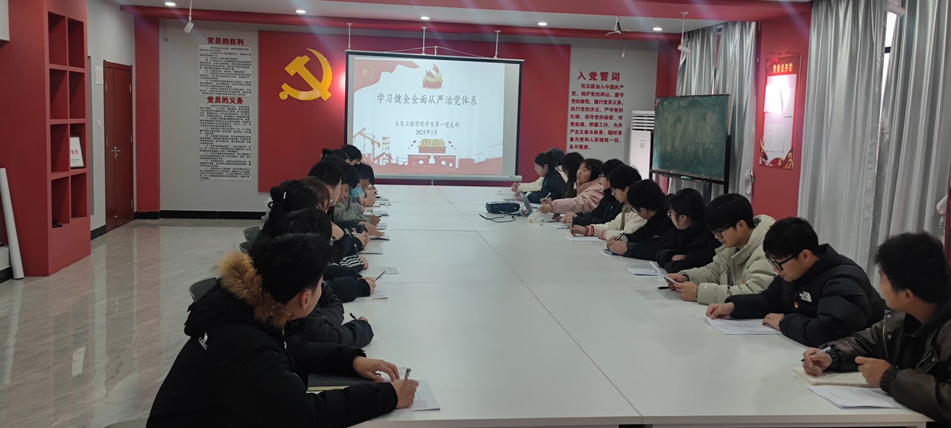 为加强学生党员的思想政治教育,提升党支部的凝聚力和战斗力,2月28日,土木工程学院学生一支部组织开展专题党课学习活动,深入学习《健全全面从严治党体系》重要文章,并就习近平总书记在中共中央政治局民主生活会上重要讲话相关内容进行研讨交流。
