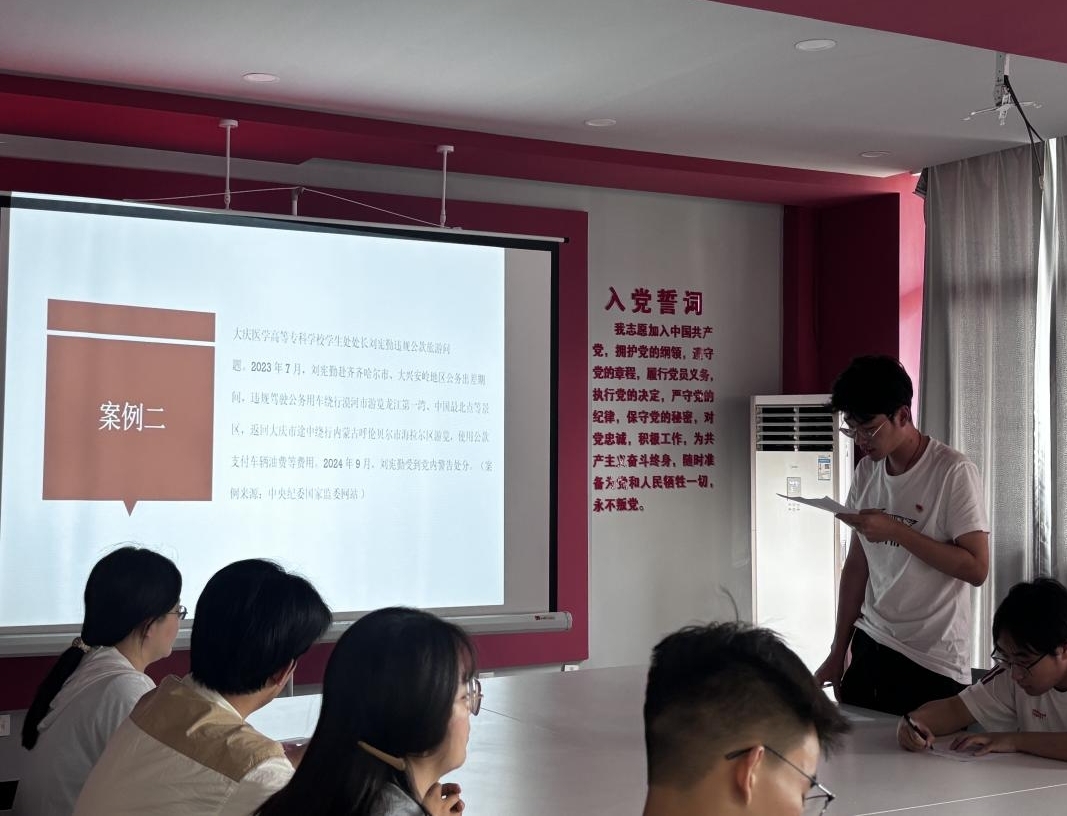 会上,全体党员集中学习了教育领域发生的多起违反中央八项规定精神的典型案例。王露仪强调,无论是学生党员还是教师党员,都必须始终保持政治清醒,严守纪律红线和廉洁底线,坚决摒弃侥幸心理,切实防范关键环节廉政风险,将纪律规矩内化于心、外化于行。