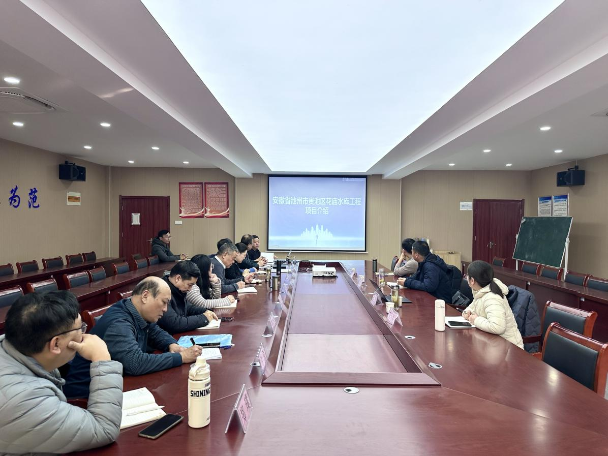 总经理助理韦伟详细介绍了公司当前承接的安徽省池州市贵池区花庙水库工程项目,系统阐述了该工程的特点、技术指标及面临的重难点。与会专家教授结合各自研究领域,就项目中的关键技术问题进行了深入分析和探讨,提出了多项建设性意见。随后,双方进一步围绕施工工法创新、联合科研项目申报、高水平科研立项以及科技成果报奖等具体合作路径与模式进行了广泛而务实的沟通,初步达成了多项合作意向。