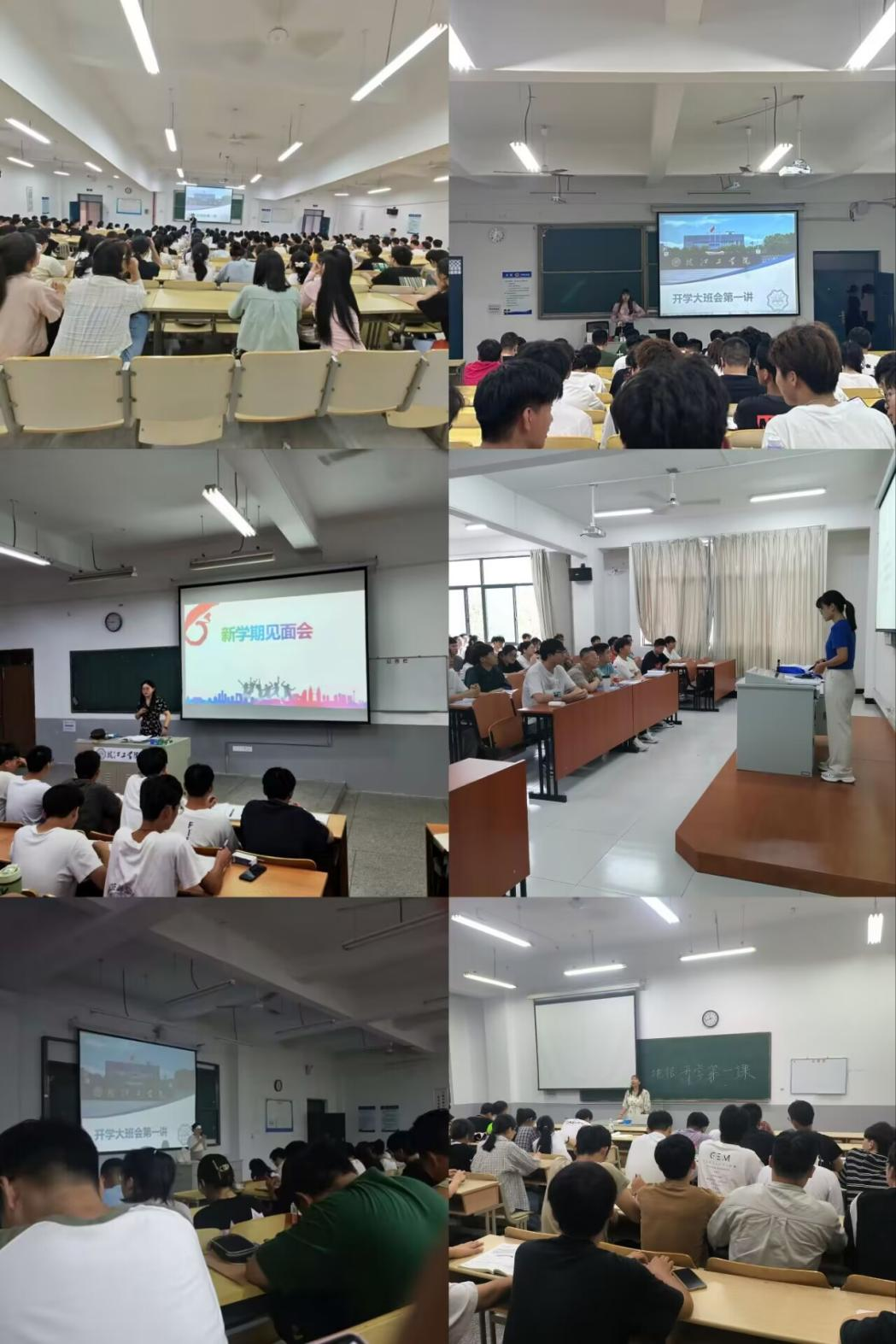 会上,辅导员老师首先对同学们如期来校报到表示热烈欢迎。随后,辅导员老师作为主讲人总结了上学期学业成绩及生活各方面情况,对表现优秀的同学提出表扬,对后进同学也做出了“补考”等工作提醒。辅导员老师结合年级专业特点,强调新学年新学期重点工作,号召同学们确定清晰的个人目标和科学的发展计划,重在落实,难在坚持,要不断突破个人“瓶颈”,成长为更好的自我。除此之外,各位老师对防火用电、防电信诈骗等安全问题也做出了重点强调。我院郑蒲港校区辅导员也分别给7个专业新生隆重召开了“开学第一课”,辅导员老师根据自身学习经历,积极引导广大新生认真对面即将开始的大学生活,养成良好的学习习惯,为四年充实的大学生活打好坚实基础。