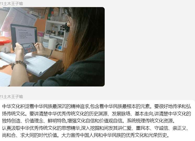 这次微党课学习,不仅为学生们提供了一个交流与分享的平台,也激发了学生党员为建设文化强国贡献智慧和力量的热情。他们表示将继续努力学习,不断提升自身素质和能力水平,以实际行动将学到的知识转化为具体的行动,参与到校园文化的建设中来,为营造积极向上的校园文化氛围作出积极贡献。(土木工程学院 供稿)