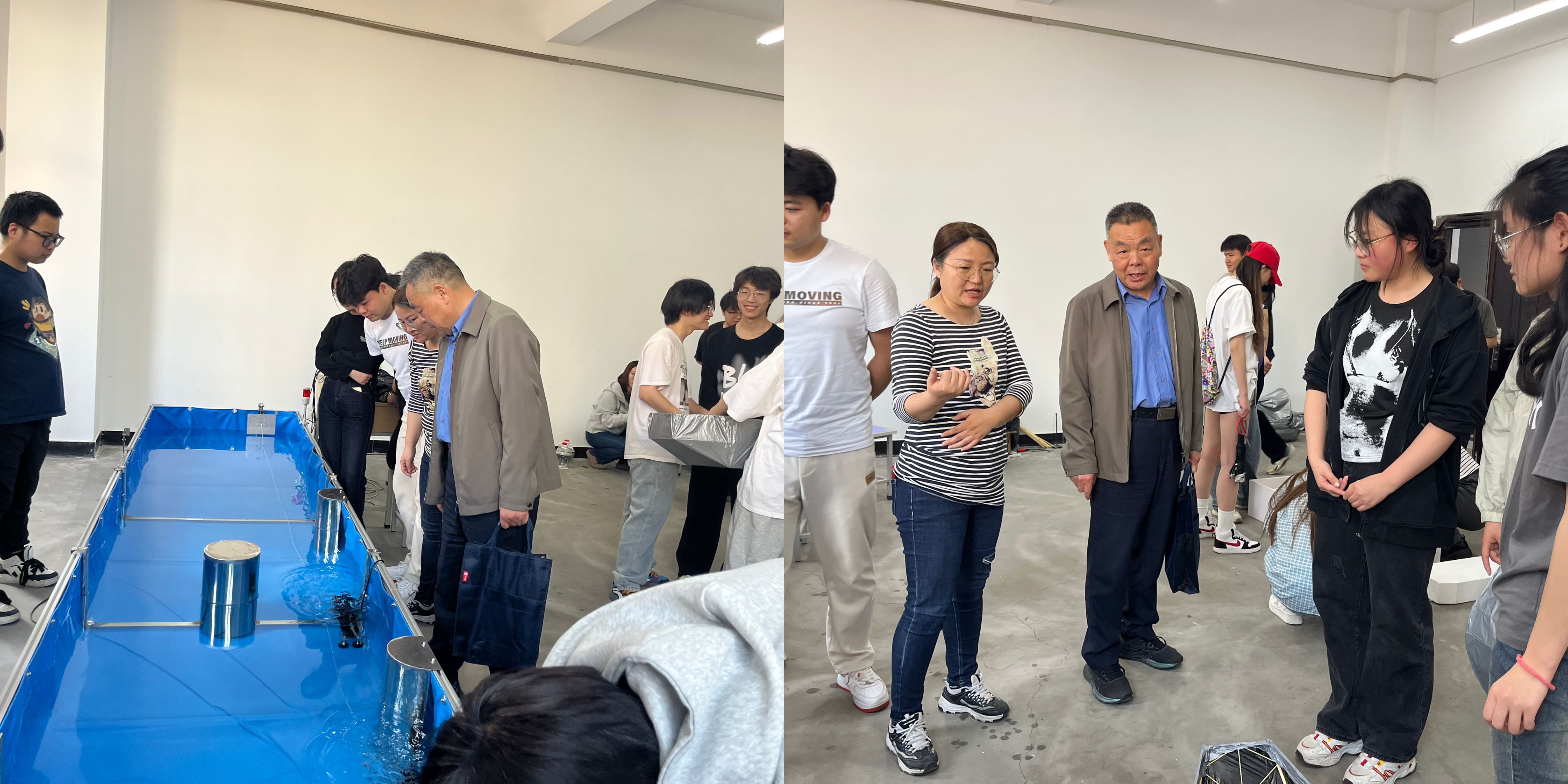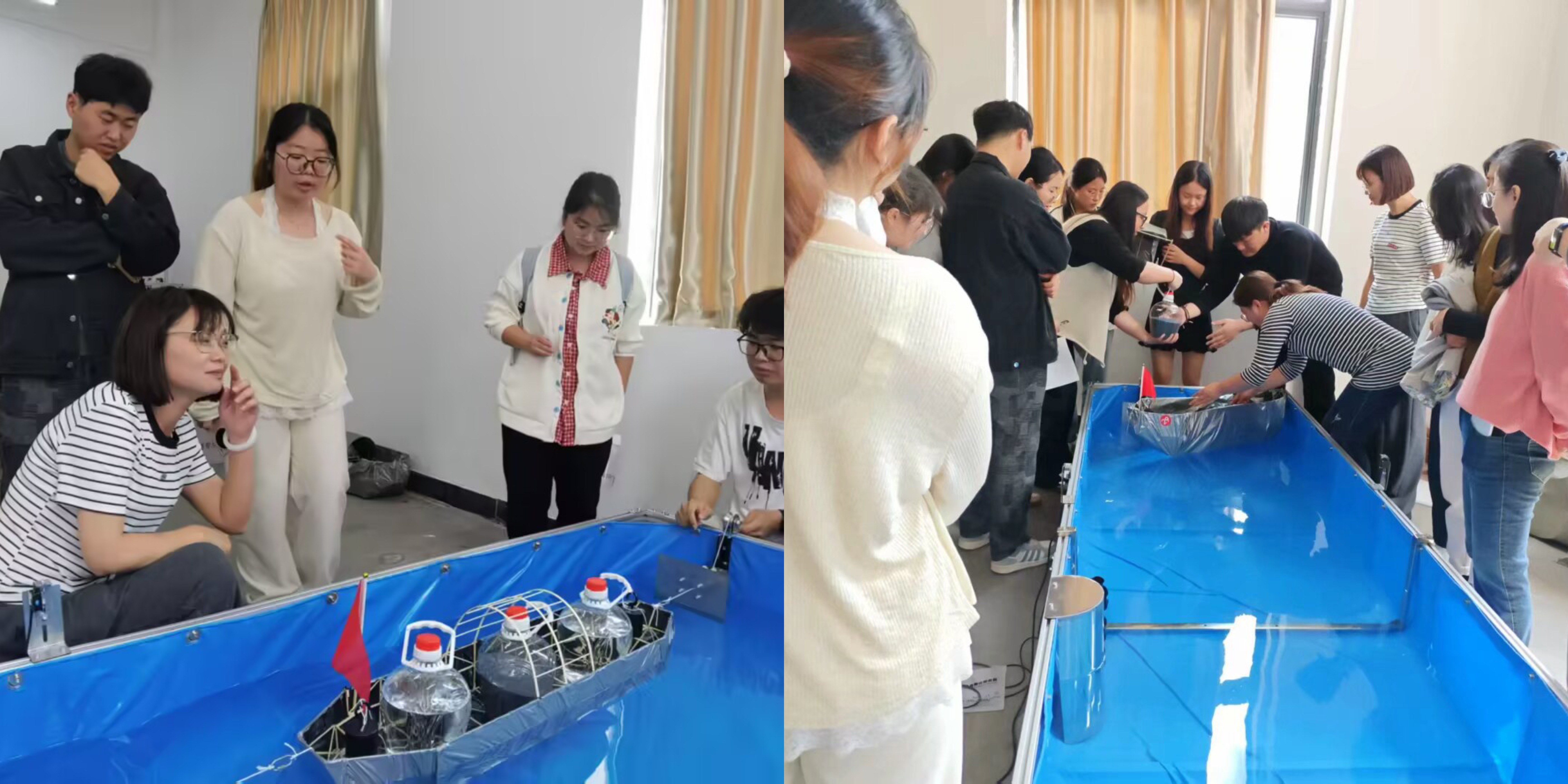 最后,按照赛题要求,每组模型进行逐级加载。考查模型抵抗偏心载能力、局部承重能力和满载航行能力。