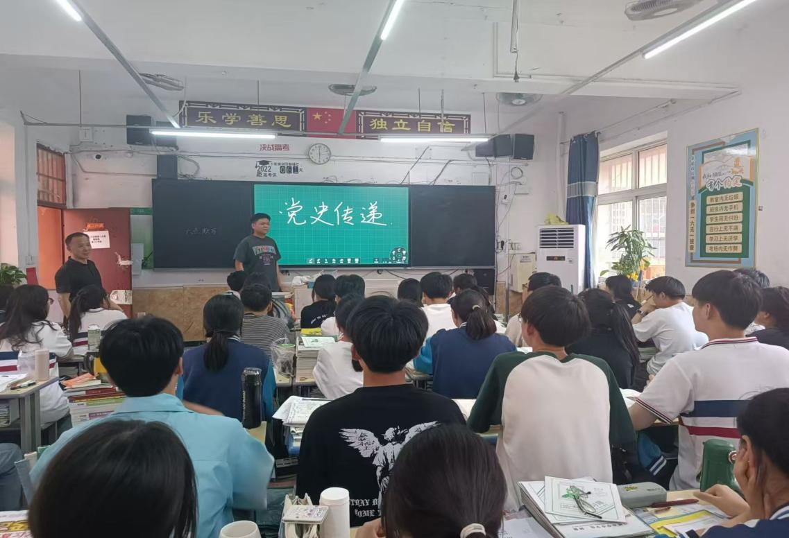 实践队来到了高二年级9班,为正值青春年少的高中青年讲述了党史故事。新时代青年应不忘来时路,学习英烈前辈的事迹,自强奋进。从艰苦卓绝的革命斗争,到波澜壮阔的改革开放,再到新时代的伟大征程,无数仁人志士高擎理想火炬,矢志砥砺前行,无一不用实际行动诠释了何为忠心爱国。身陷囹圄之时,方志敏强忍痛楚,铁骨铮铮,以无限的未诚书写对祖国美好的憧憬--“中国一定有个可赞美的光明前”;面对外军悍然越线挑衅,“00 后”戍边战士陈祥榕奋力反击,英勇牺牲,用生命诠释“清澈的爱,只为中国”......
