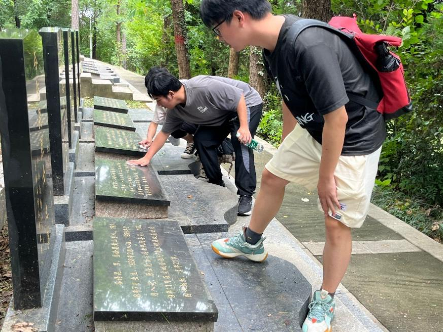 深入园林,一排排整齐肃立的红军和烈士的墓碑,它们静静地诉说着英雄们的故事。在队长的带领下,团队进行了庄重的集体扫墓活动。同学们缓缓走向每一座墓碑,轻轻擦去墓碑上的残叶,低头默哀,表达对革命先烈最深切的怀念。这一刻,空气中弥漫着庄重与肃穆,每个人的心中都涌动着对历史的敬畏和对英雄的敬仰。