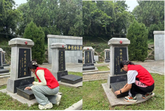 走进陵园,队员们怀着肃穆之心来到烈士墓区,自发俯身拂去碑面浮尘,连碑文中的细小缝隙也不放过,认真清理污渍。清理过程中,成员们神情凝重,不时驻足凝视碑文,认真聆听讲解员讲述烈士生平事迹,在指尖与碑文的触碰中,感受英烈们舍生取义的崇高精神。