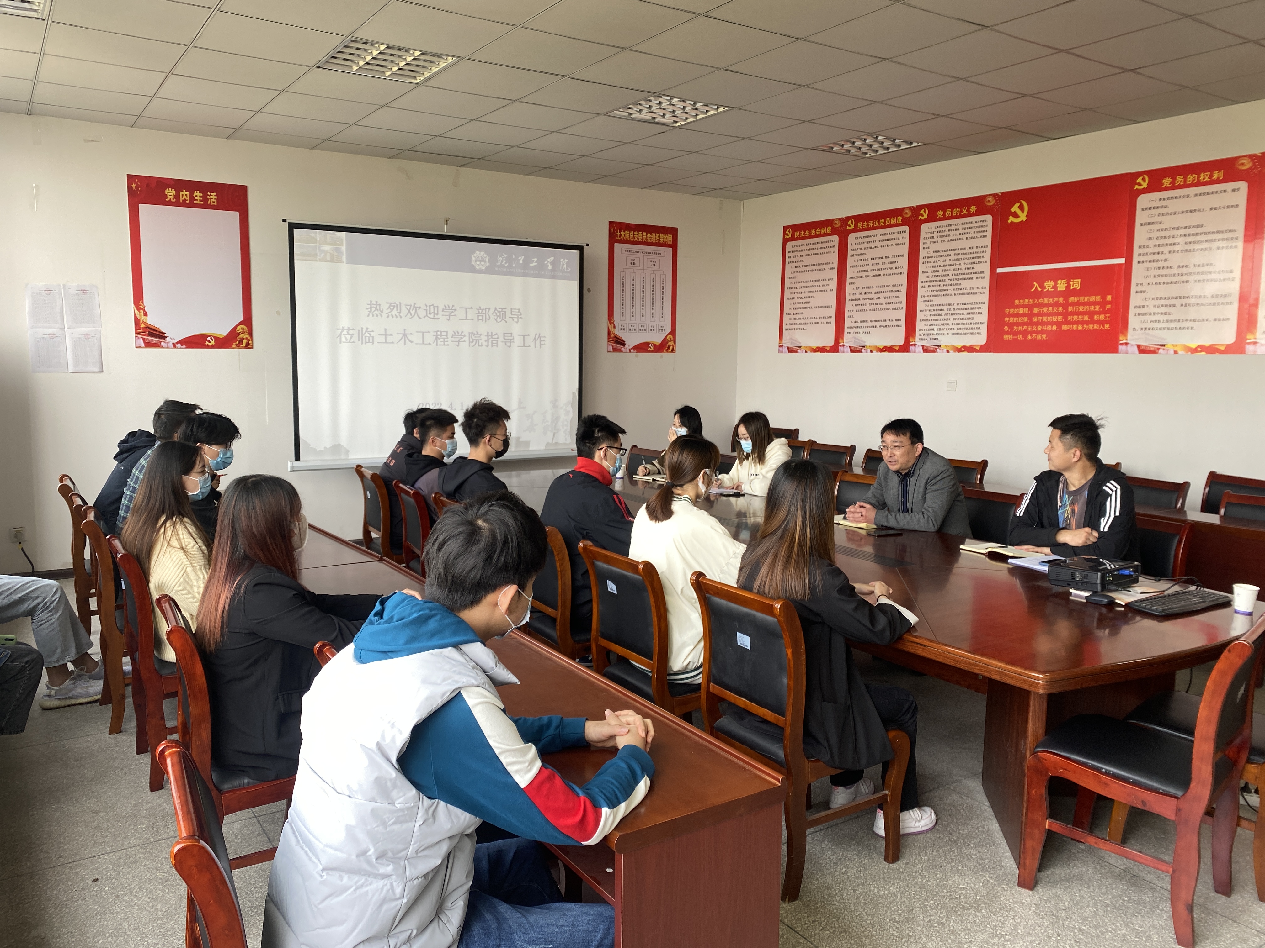 为深入了解疫情防控期间学院工作开展情况,解决师生员工实际问题,校学工部副部长江春明一行于4月1日来到土木工程学院开展调研活动,活动地点为C楼507会议室。土木工程学院院长陈礼和、党总支副书记王瑜及学院学工团队参与此次活动,学生座谈会有学院各年级专业学生共计15人参加。
