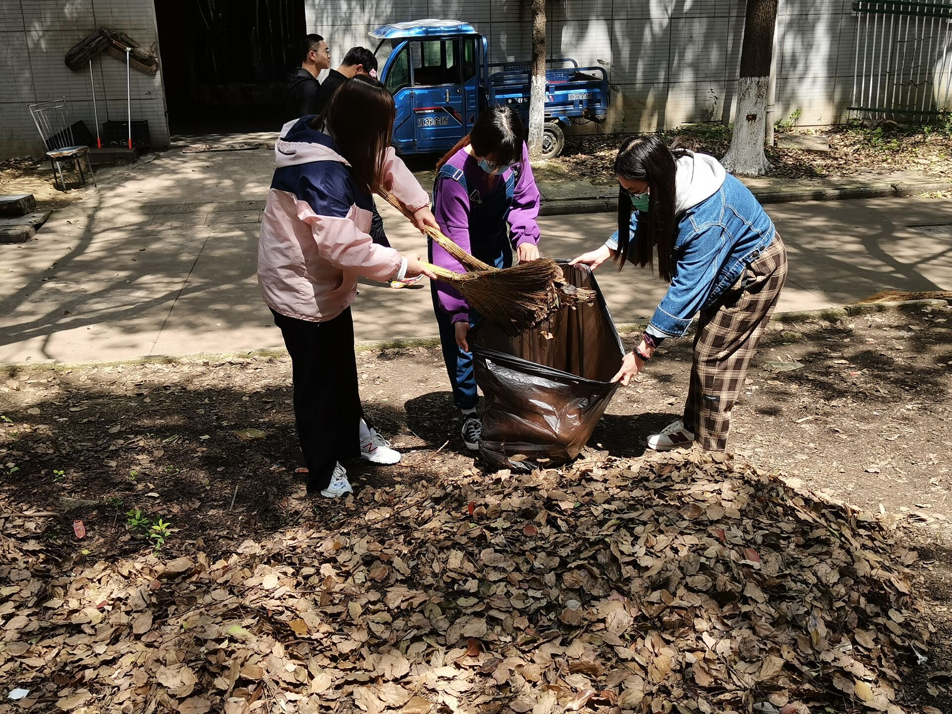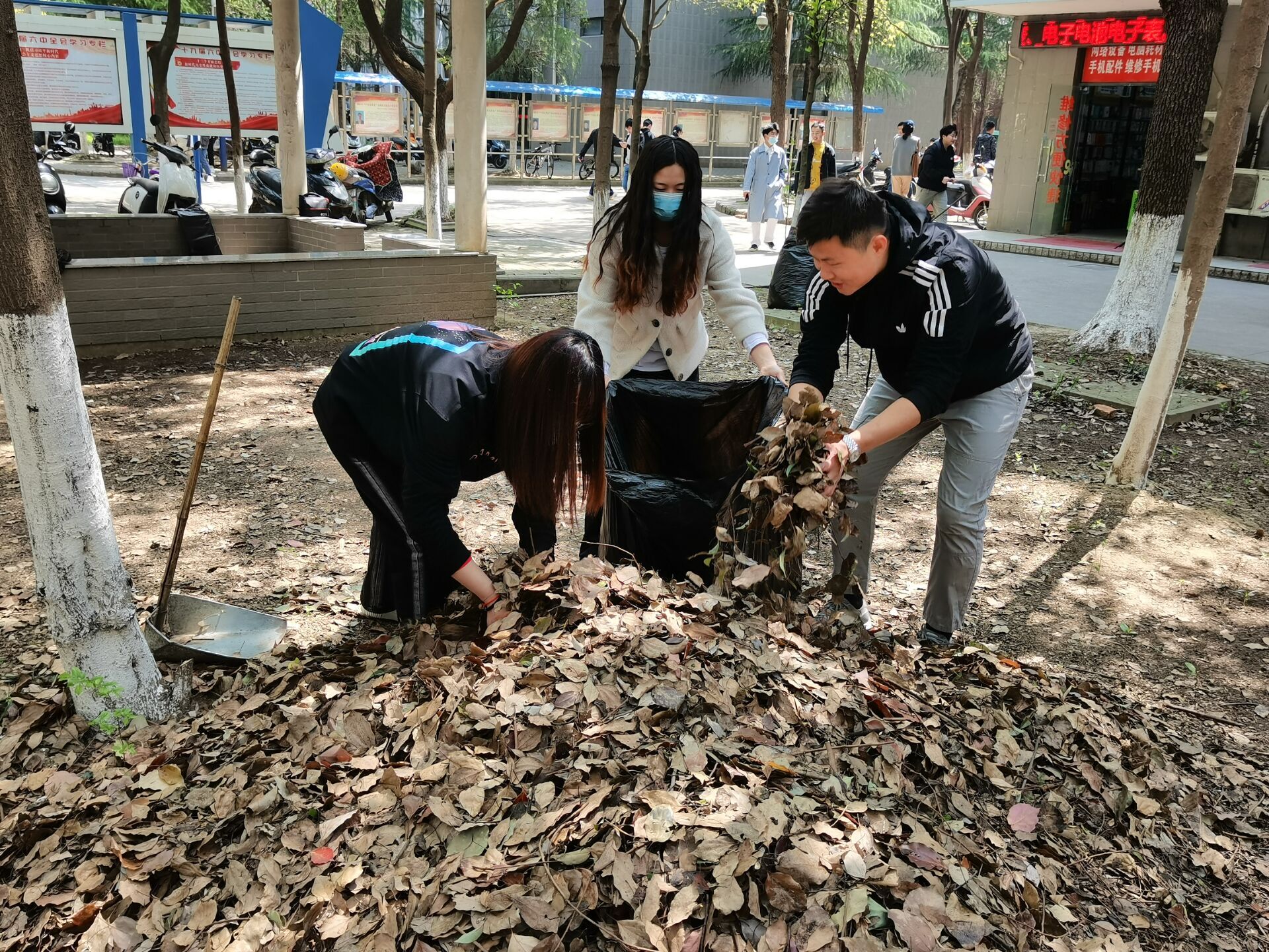 清扫开始前,王瑜副书记在现场对全体发展对象进行了工作动员,强调了本次活动的意义和作用,对劳育共建区域进行了分片,并对清扫队伍进行了分组,同时对清扫效果提出了明确要求。清扫过程中,全体师生积极劳动,一丝不苟,对劳动区域进行了“地毯式”清扫,尤其是对落叶枯枝和常年累积的腐叶进行了彻底清理。经过2个多小时的集中劳动,共清理整装树叶四十余袋,劳育共建基地面貌焕然一新。