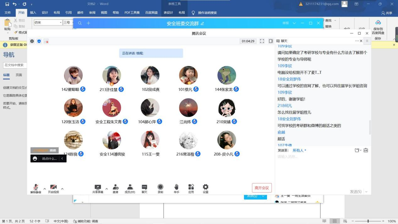 考研交流会以不同专业分别开展了六场线上会议,辅导员俞越、徐思佳全程参与组织,全体2021级学生、部分2020级和2019级学生与黄科文、吴李杏子、钱程、朱莉莉、车可可、董红静等16位2022届优秀考研上岸学生代表充分交流。会上,优秀毕业生代表以考研经历自述和问答的形式与学生展开深入交流,先后围绕“考研择校”、“考研所需准备”、“备考时间分配与学习方法”等诸多问题展开,经过近一个半小时的互动交流,学生反响热烈、收获满满。最后,优秀毕业生代表对2021级新生给予祝福与鼓励,学生也对高年级学长学姐表示感谢。