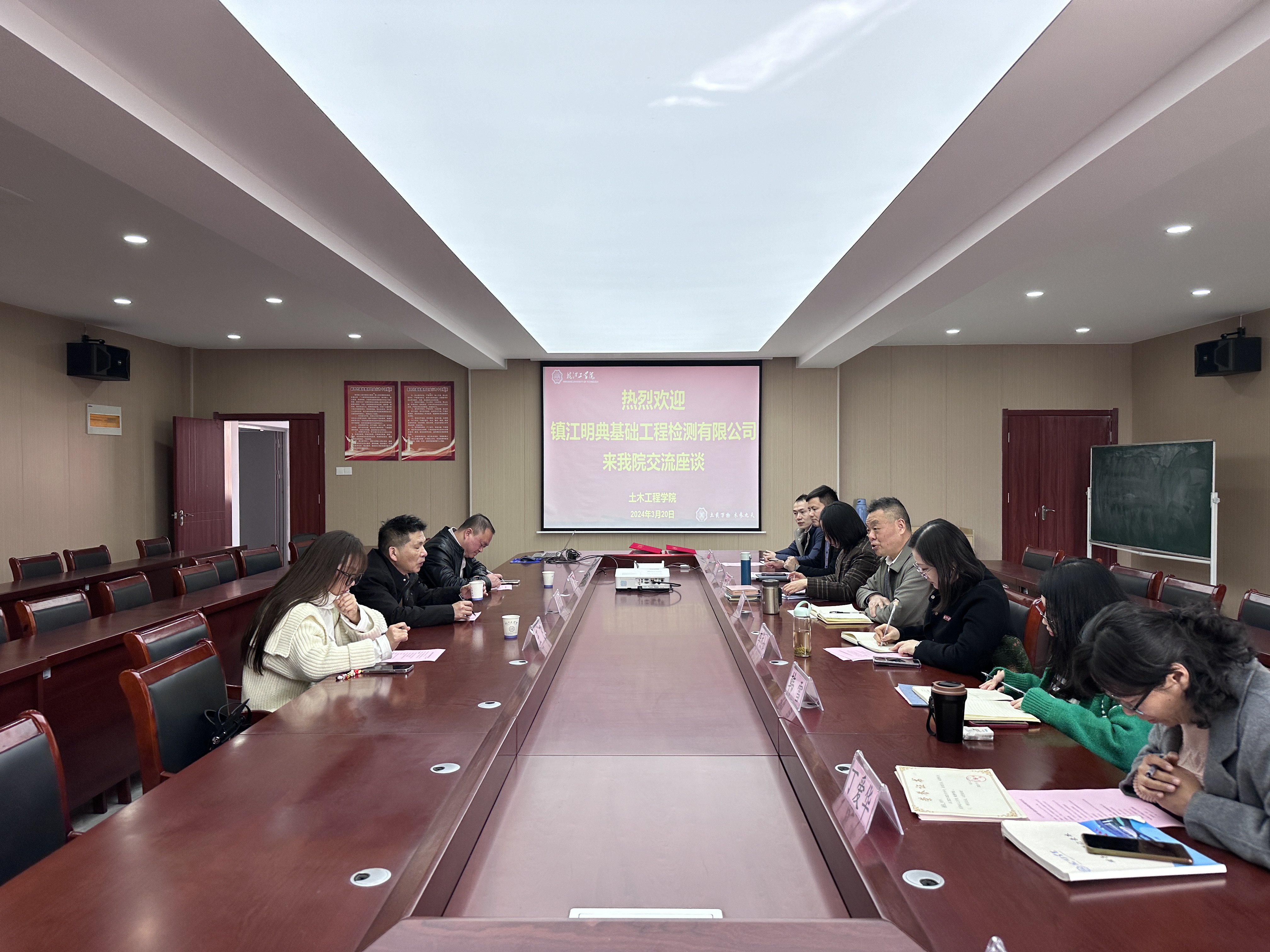 为促进校企深度融合发展,提升学生就业质量。3月20日下午,土木工程学院与镇江明典基础工程检测有限公司签订人才培养与就业基地建设合作协议,并举办招聘交流会,学院领导班子及毕业班辅导员参加会议。