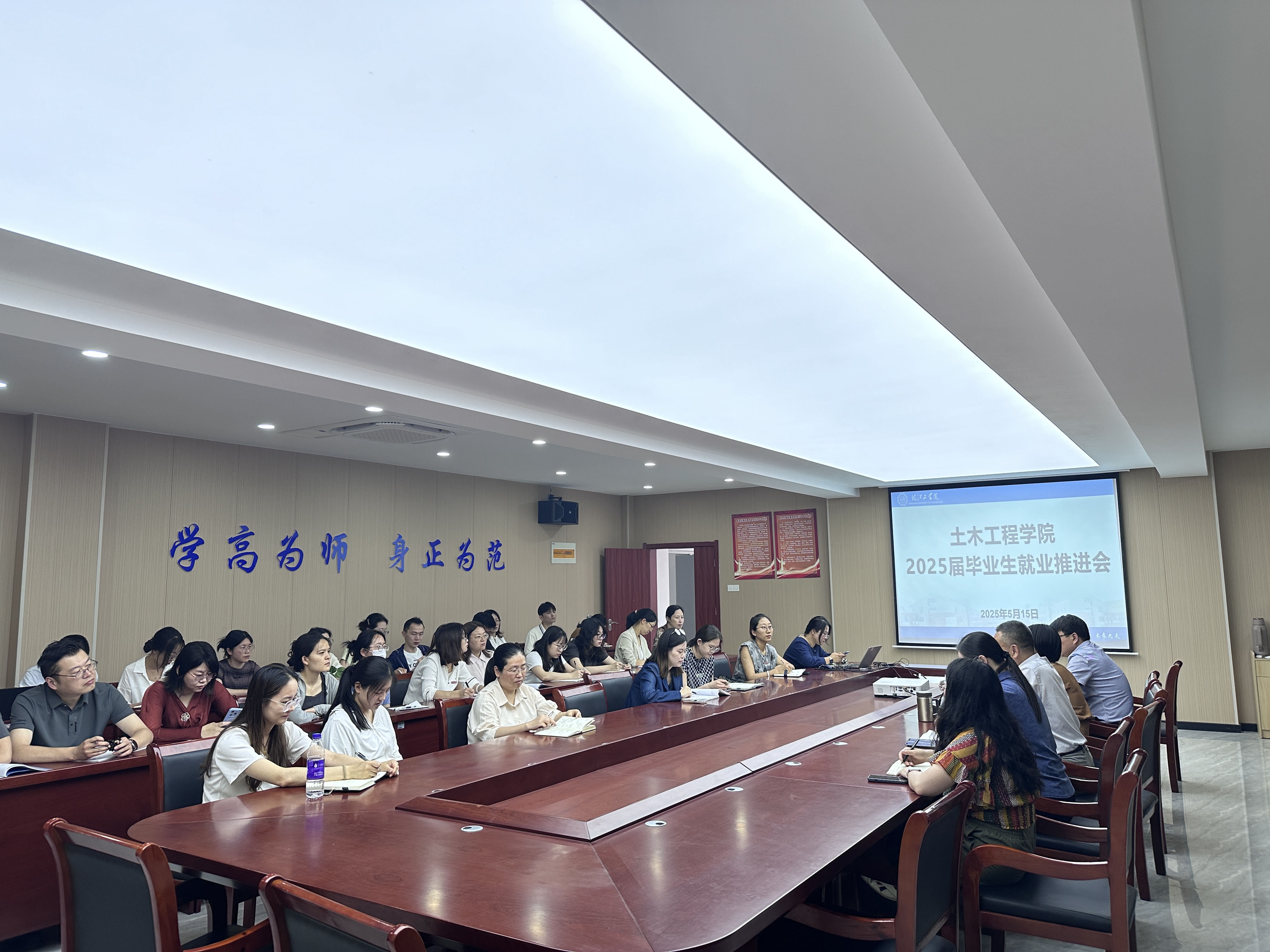 为全力推动2025届毕业生高质量充分就业,5月15日上午,土木工程学院召开2025届毕业生就业推进会。学院领导班子成员、各教研室主任、毕业设计指导教师和毕业班辅导员参加。