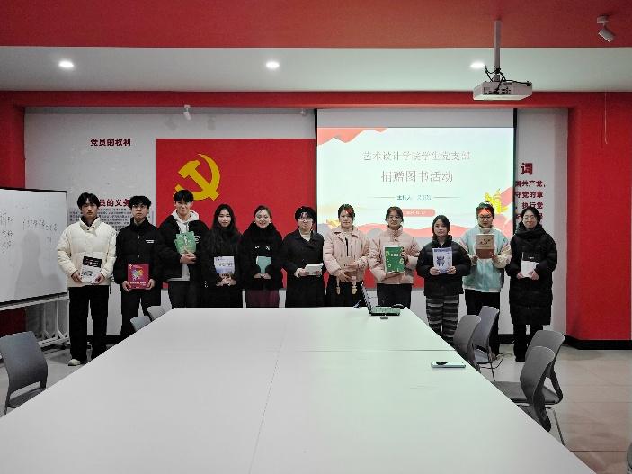2024年12月30日,艺术设计学院学生党支部于洪雅楼201会议室成功举办图书捐赠活动。此次活动由学生党支部书记吴语嫣主持,学院师生党员代表共同参与。