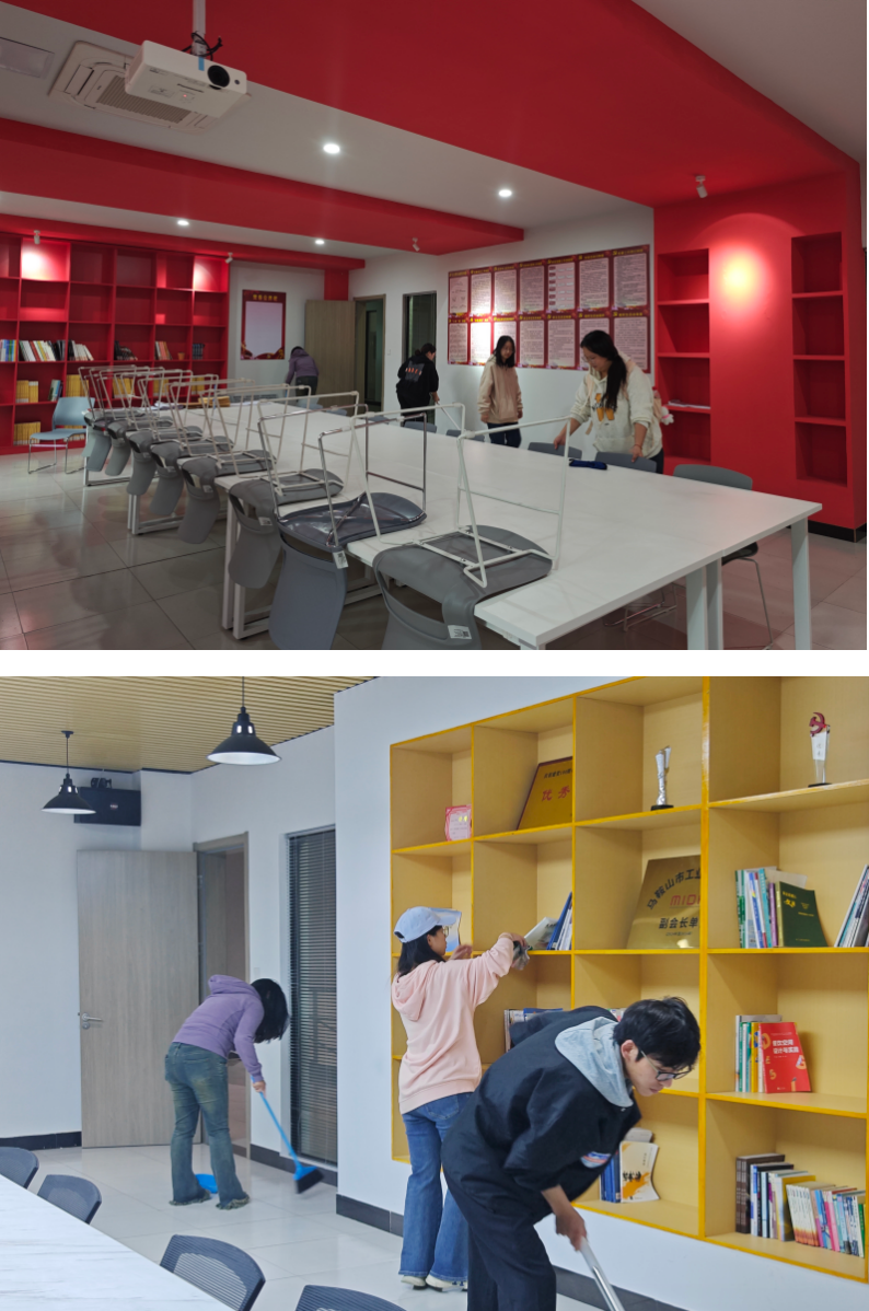 在打扫过程中,团员们充分发挥了不怕脏、不怕累的精神。他们认真仔细地清理每一个卫生死角,不放过任何一个细节。经过努力,学院会议室焕然一新,地面干净整洁,桌椅摆放整齐,窗户明亮透彻,整个环境变得更加舒适宜人。