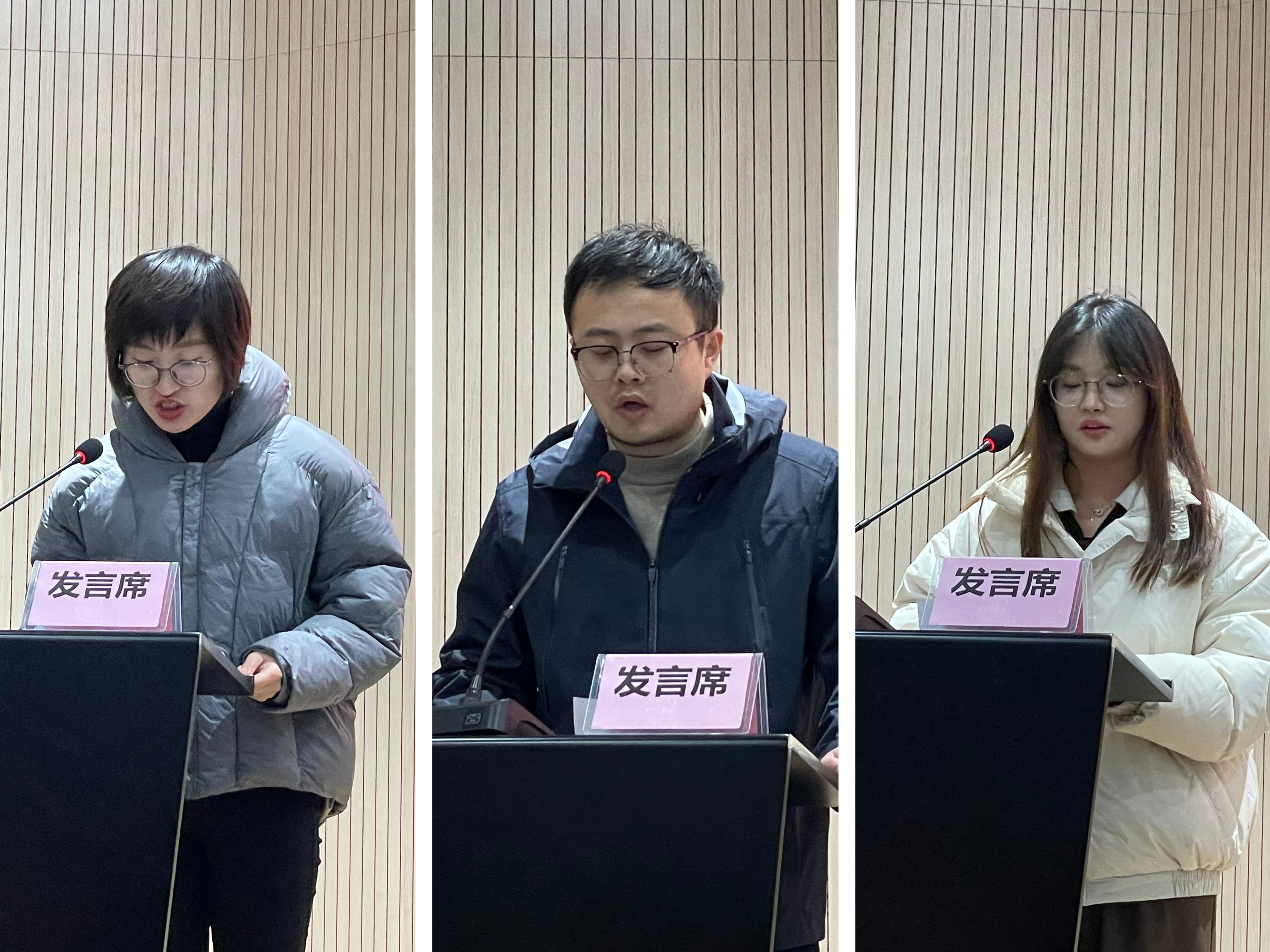 21级郑丽同学代表考研学生发言。她表达了初入大学的迷茫,而学院本科生导师制的实施从根本上解决了自己的疑虑。郑丽同学以真挚的情感感谢学院与导师,并承诺一定会严守校纪校规,端正态度,积极备考,增强个人素养,不负学院和老师的期望。