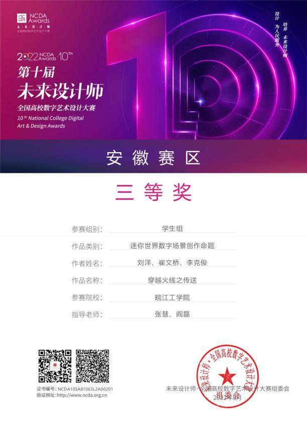 近日,2022第十届未来设计师——全国高校数字艺术设计大赛结果公布,艺术设计学院刘瑛老师带领的师生团队在省赛中斩获佳绩,荣获二等奖一项,三等奖三项。