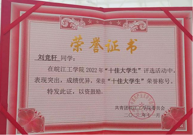 日前,艺术设计学院20级数媒专业3班刘竞轩同学在beat365官网开展的2022年度“十佳大学生”评选活动中获得“十佳大学生”荣誉称号,这也是艺术设计学院学生首次获得这项殊荣。