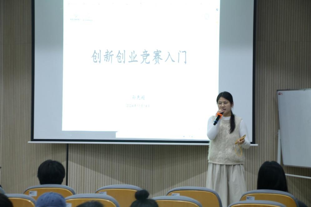 院学生会主席团成员郭星月同学也以自身经验为例,分享了参与创新创业赛事的重要意义,动员同学们积极参加各类创新创业赛事,