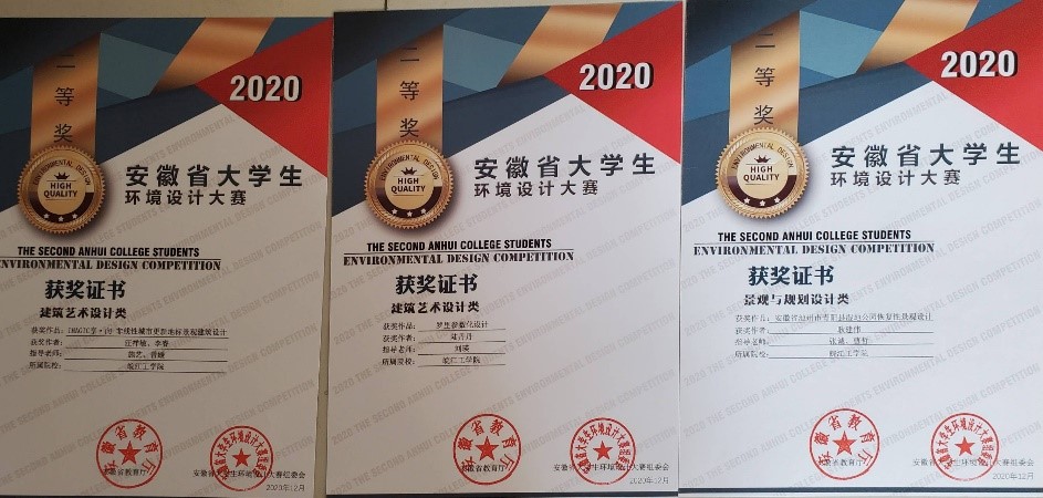 近日,由安徽省教育厅主办的“第二届安徽省大学生环境设计大赛”作品评选结果揭晓,本次竞赛,艺术学院领导高度重视,环境设计教研室精心组织,在各位指导教师的悉心教导下,同学们踊跃参与。大赛经过初评、终评的层层角逐,我院环境设计专业学生分别荣获5项二等奖、4项三等奖。