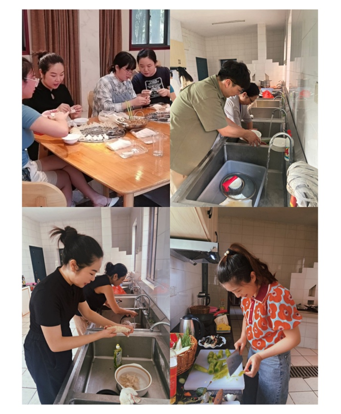 活动中,院长江冰教授亲自掌勺制作东北饺子馅,并指导青年教师包饺子、下饺子。学院每位老师也借此以机会展示自己教学以外的美食才华,一盘盘拿手菜点燃了整个晚宴的氛围。