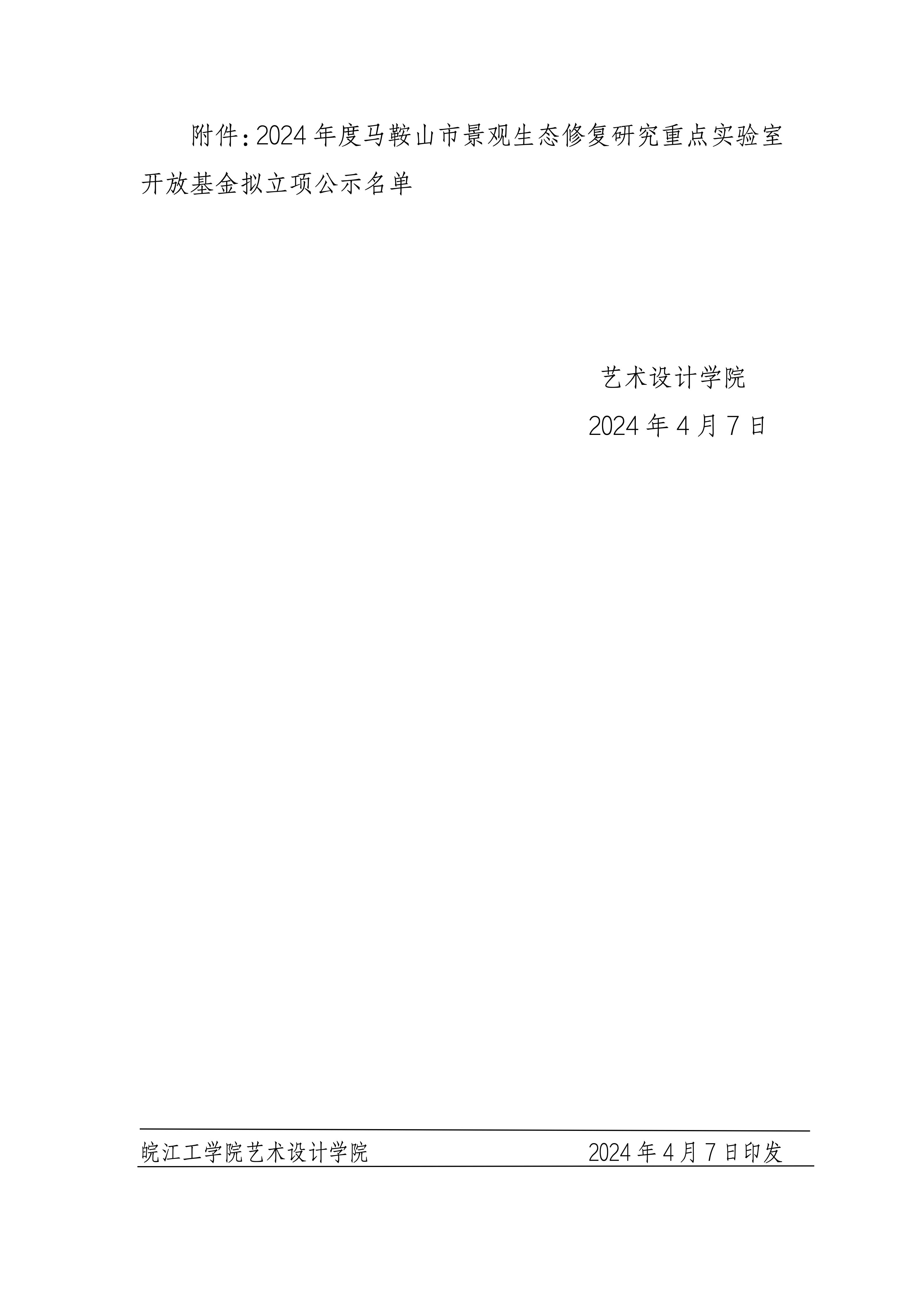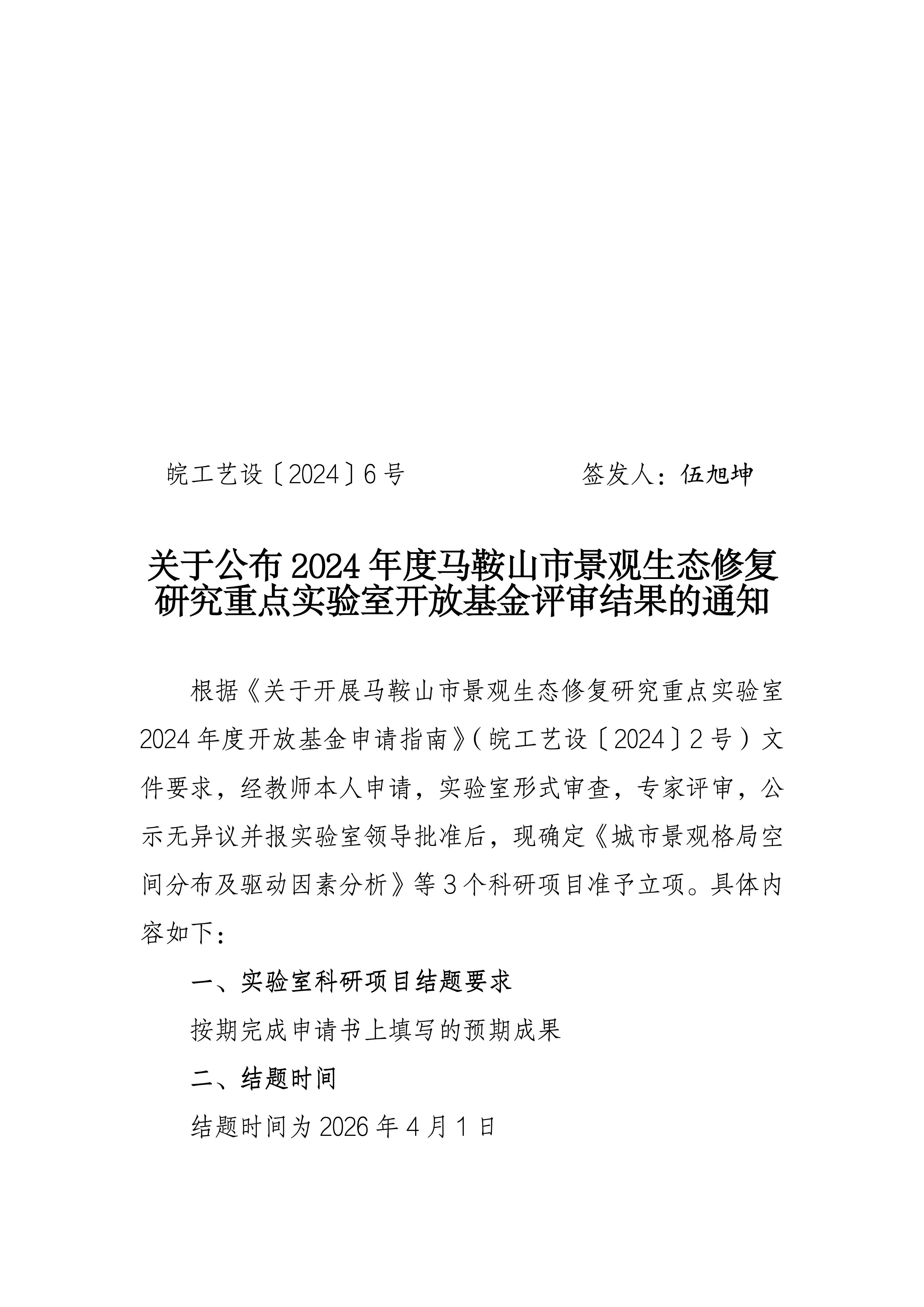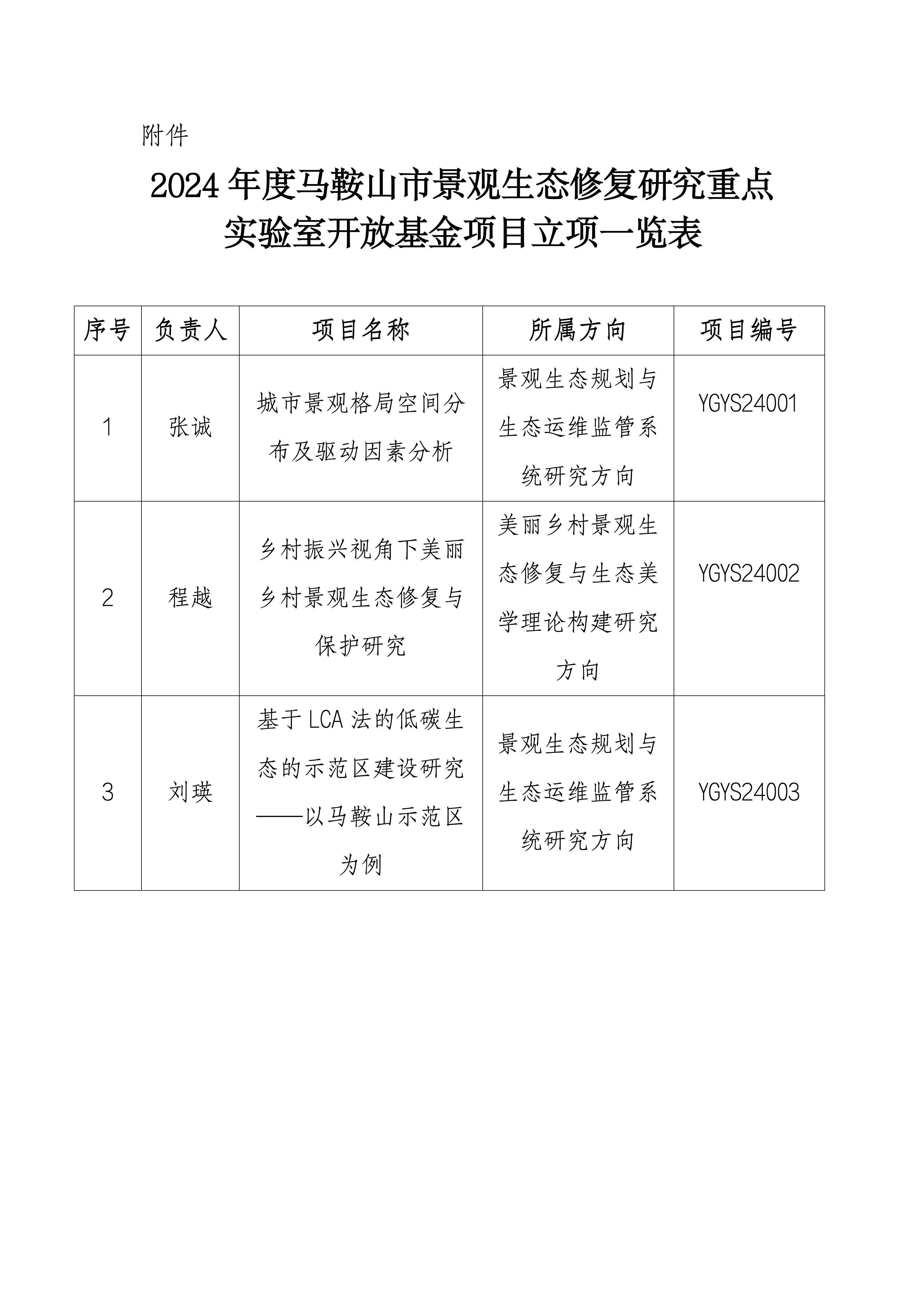 关于公布2024年度马鞍山市景观生态修复研究重点实验室开放基金评审结果的通知