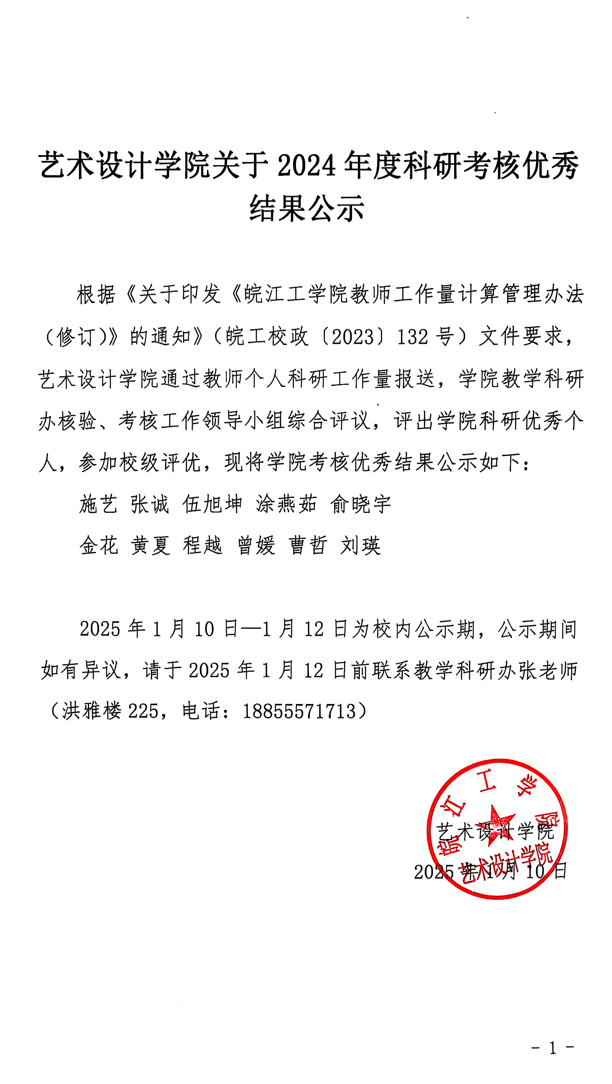 艺术设计学院关于2024年度科研考核优秀结果公示