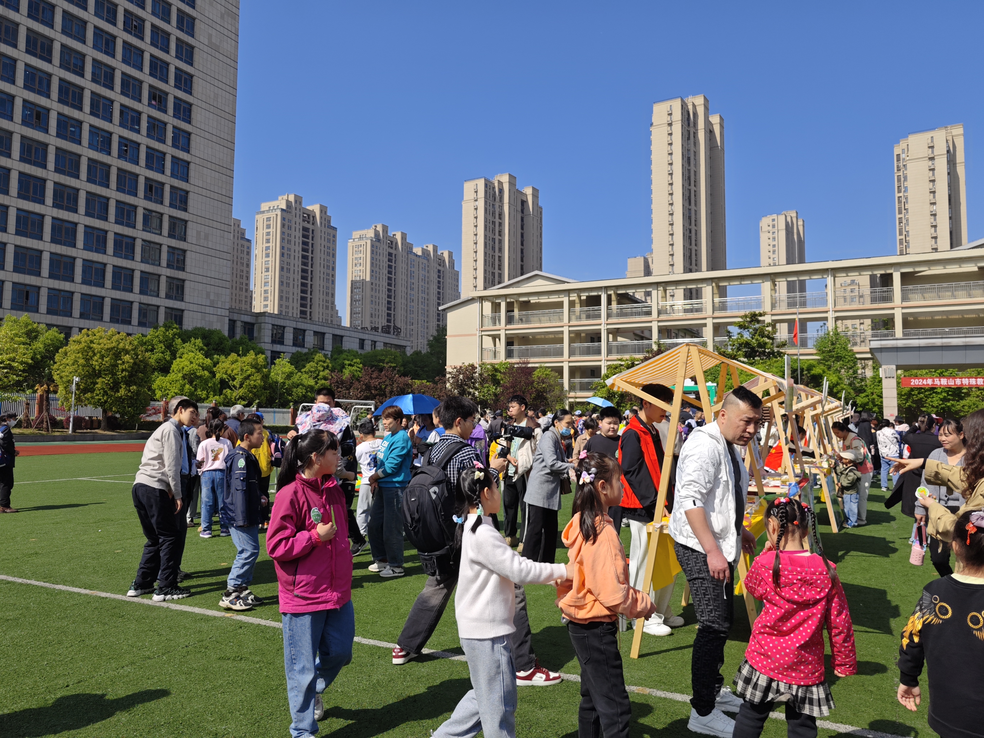 活动当天,志愿者们早早地来到活动现场,与特殊教育学校的师生们一起布置场地,为活动的顺利开展做好了充足准备。活动中,志愿者们各司其职,引导孩子和家长们游戏、参观,整个活动现场充满了欢声笑语,构成了一个充满欢乐与温情的爱心乐园。