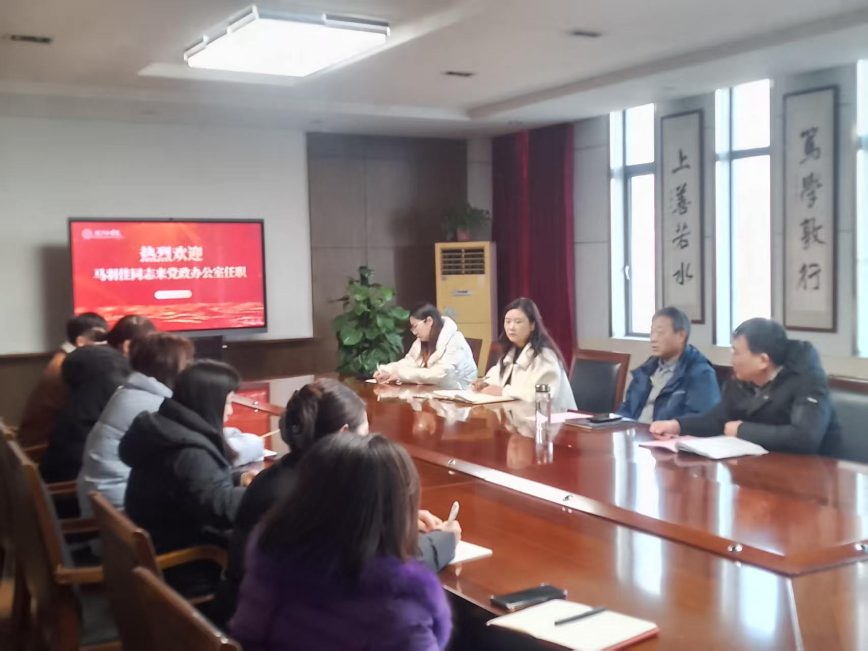 会上,宣读了学校关于马羽佳同志任职的正式文件。江春明代表党政办公室全体同仁,对马羽佳同志到任表示热烈欢迎,简要介绍了党政办公室作为学校核心综合协调部门的职责、范畴及后续发展规划,希望其尽快熟悉工作、融入团队,发挥自身优势,为部门工作注入新活力、增添新动力。