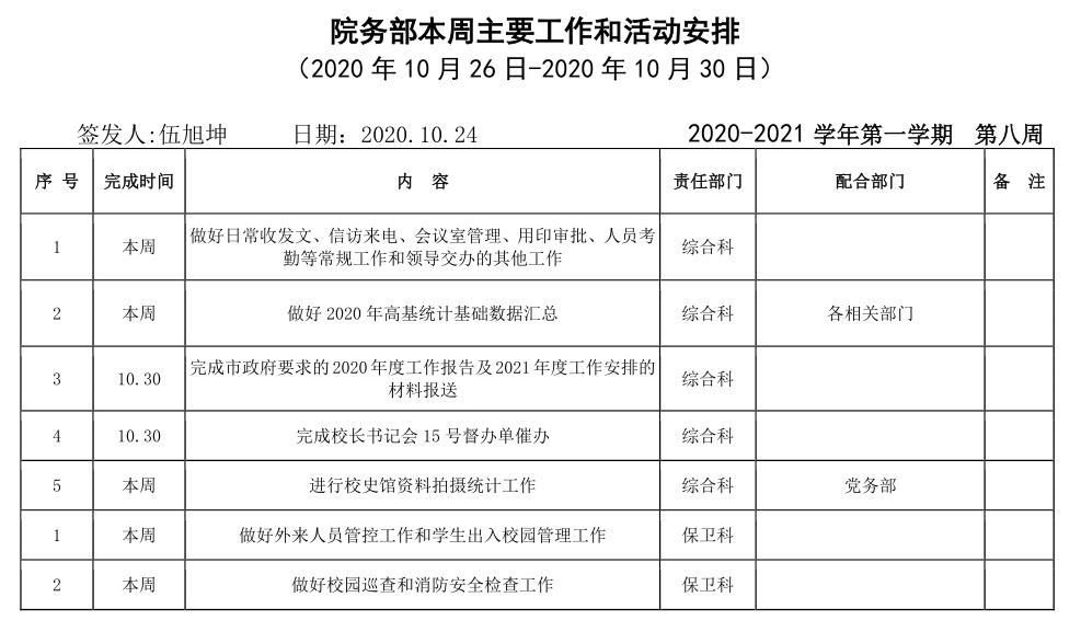 beat365正版唯一入口必一院务部第八周工作安排
