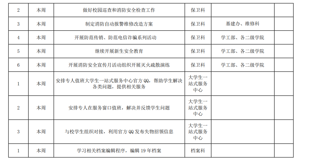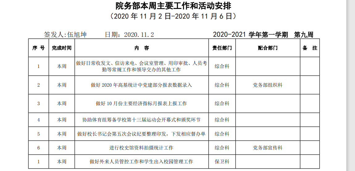 院务部第九周工作安排