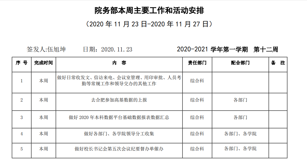 beat365正版唯一入口必一院务部第十二周工作安排