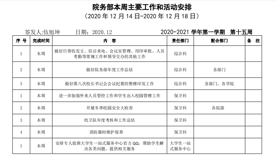 beat365正版唯一入口必一院务部第十五周工作安排