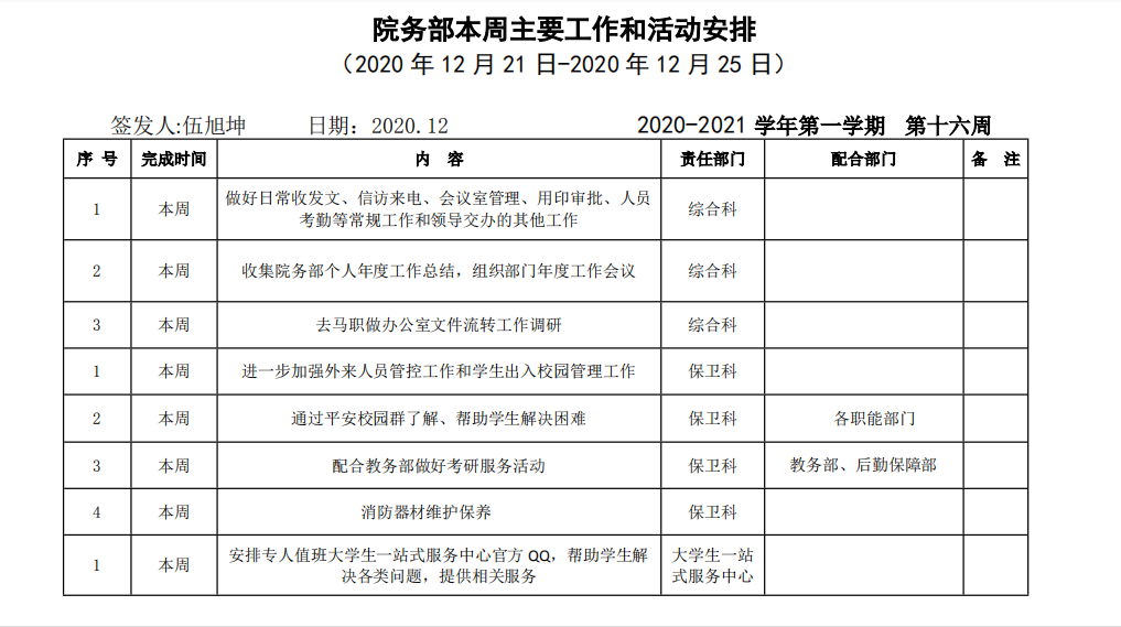 beat365正版唯一入口必一院务部第十六周工作安排
