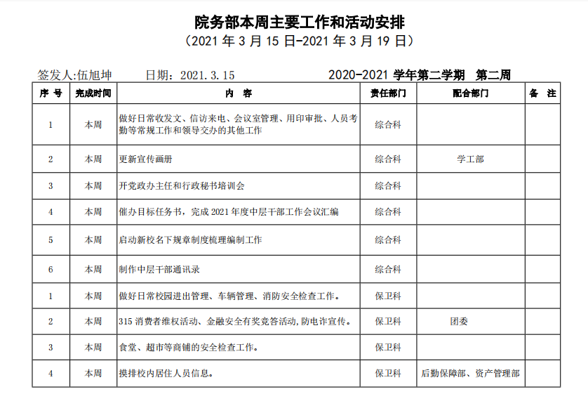 beat365正版唯一入口必一院务部第二周工作安排